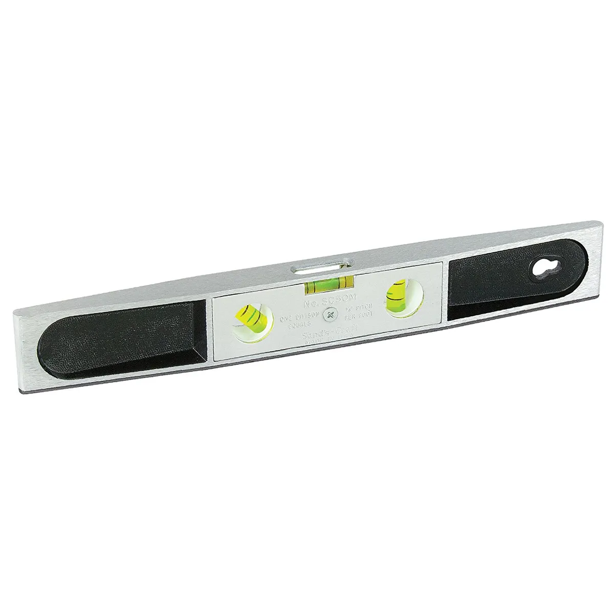 Heavy-duty cast Aluminum frame makes this level handy for everyday projects; but sturdy for rugged abuse from professional use. This versatile level has three easy-to-read high quality vials. The vials are positioned for top-reading; plumb and 45-degree leveling. Magnetic bottom expands the versatility; also great for use with metal studs. Metal frame makes it a popular choice with welders. Hang hole allows for secure easy storage.
