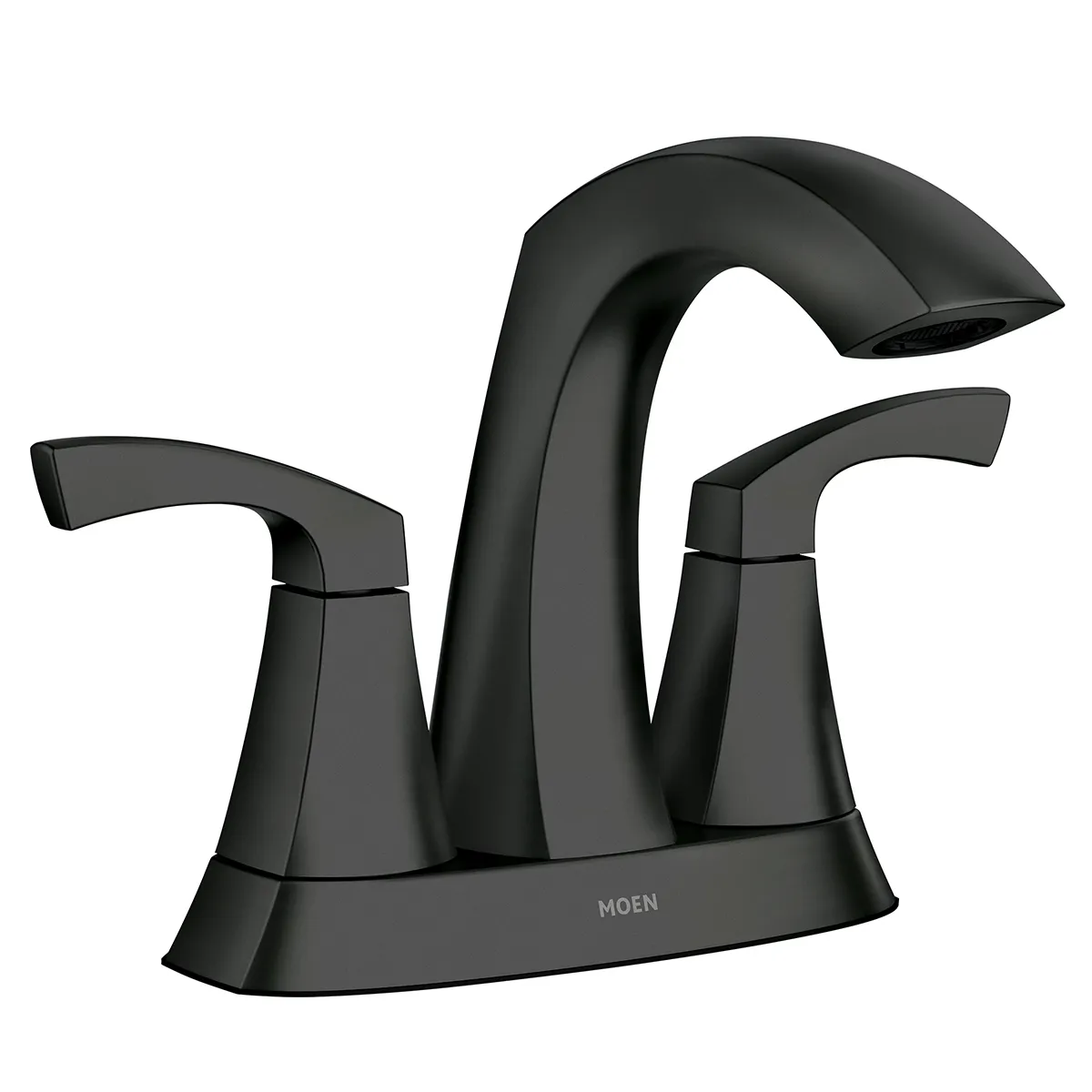 Lindor Matte Black Two-Handle High Arc Bathroom Faucet Elegantly simple, the Lindor collection's graceful curves and contours flow as beautifully as the faucet's water stream, creating a Transitional style that spans a variety of decorating trends. Benefits.