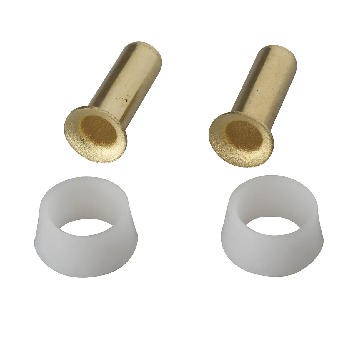 M0560 1/4 inch stiffeners and sleeves. Durable brass stiffeners. Includes two stiffeners and two plastic sleeves. For use on 1/4 inch polyethylene tubing.