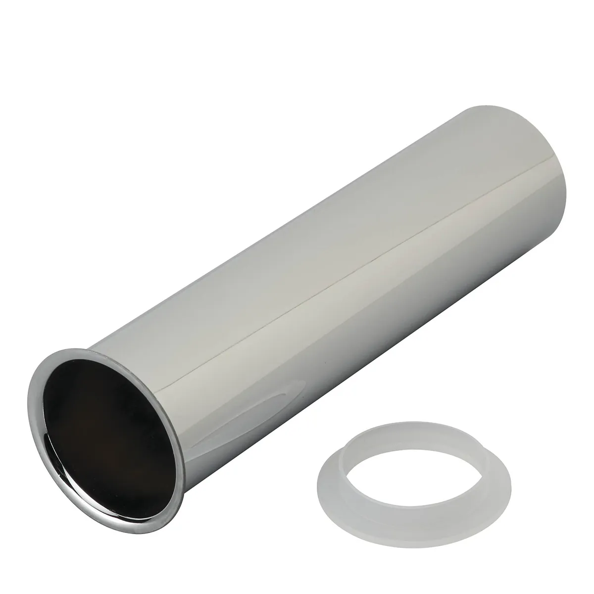 1-1/2 inch Flanged tailpiece. Durable chrome plated metal construction. 6 inch Length. Includes tailpiece washer. UPC certified.