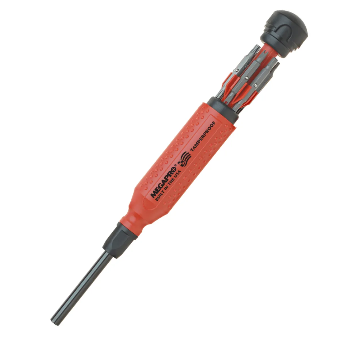 The tamperproof spanner screwdriver is a complete security screwdriver set in one driver. This 15-in-1 screwdriver is a must for all commercial and industrial tradesmen including electricians; locksmiths; telephone technicians; maintenance personnel; etc. The tamperproof assortment includes the most popular security bits: various sizes of spanners; hex pins and torx pins. The shaft opening also serves as a 1/4 hex driver!.