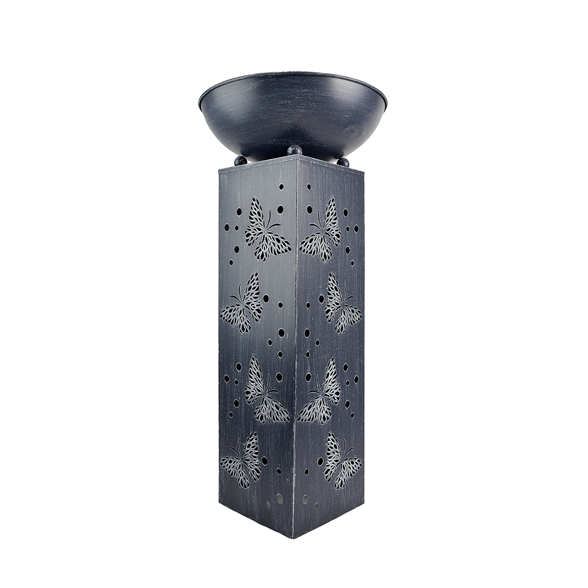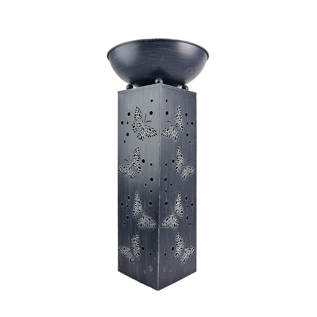 Metal Illuminated Butterfly Stand with Planter Bowl on Top 28.3in Battery Operated