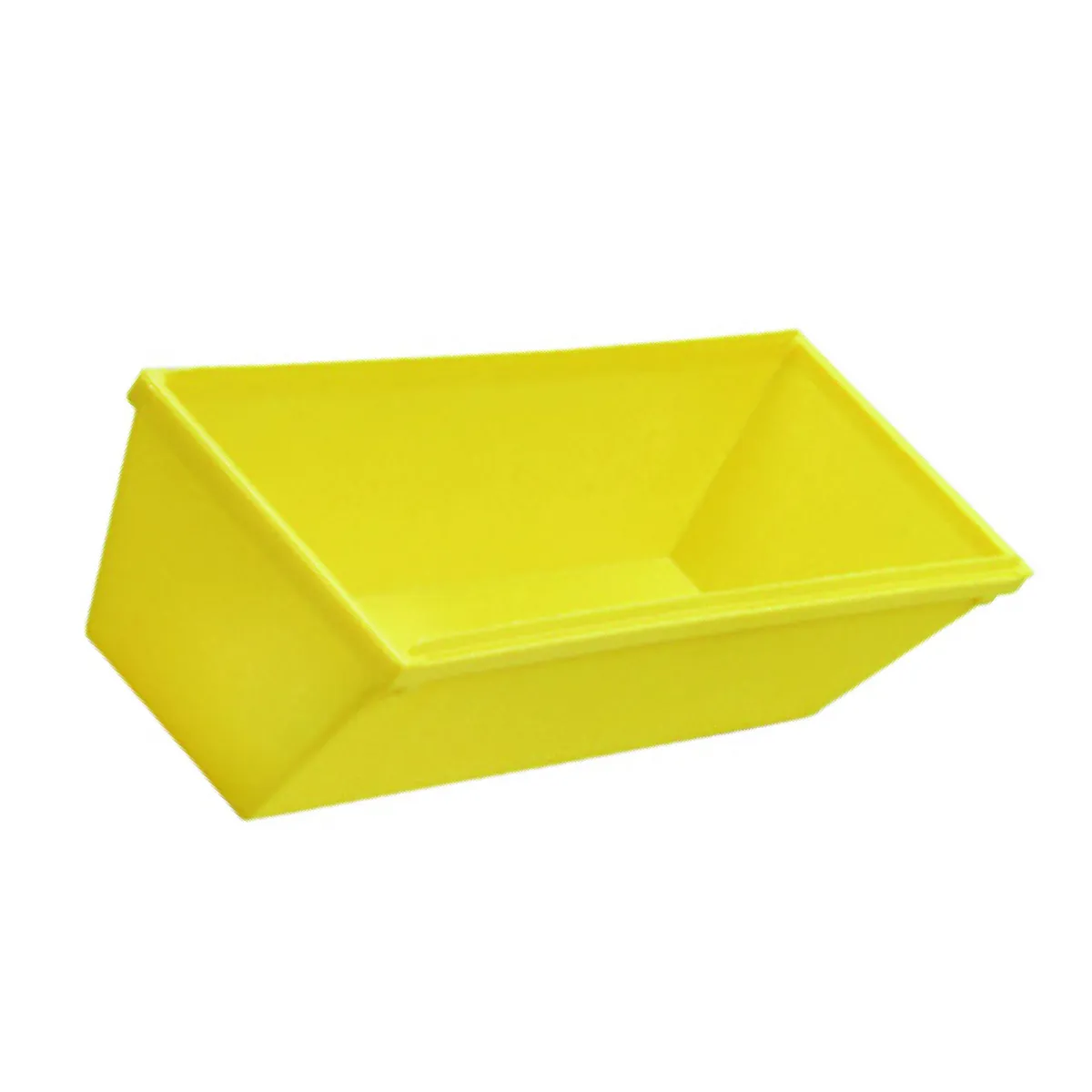 One piece injection moulded plastic pan and blades. Two Knife-scraping Edges.