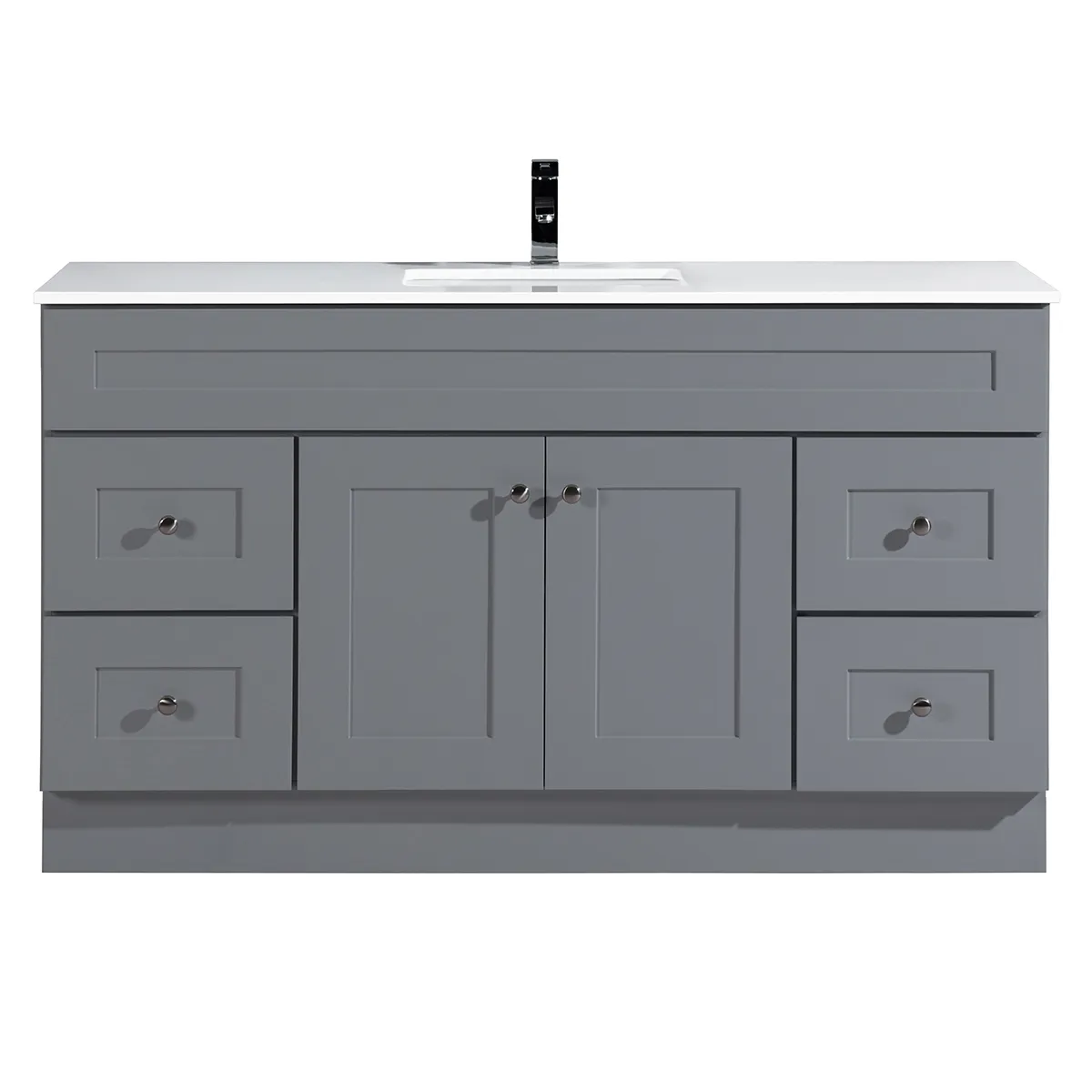 The Newport line of Vanities with thin ceramic basins are a ready to assemble economical line which is perfect for any powder room or Bathroom. The line offers style and function. These knock down cabinets are completely finished and ready to assemble. Features High Quality MDF Cabinets with Ceramic Basins. The soft close drawers and doors are whisper quiet. Available in 4 colours and sizes; the Newport line offers a simple style in every bathroom.