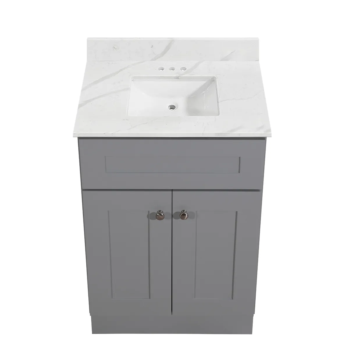 Newport Vanity Marble Top 2-Door 24in x 21in Light Grey