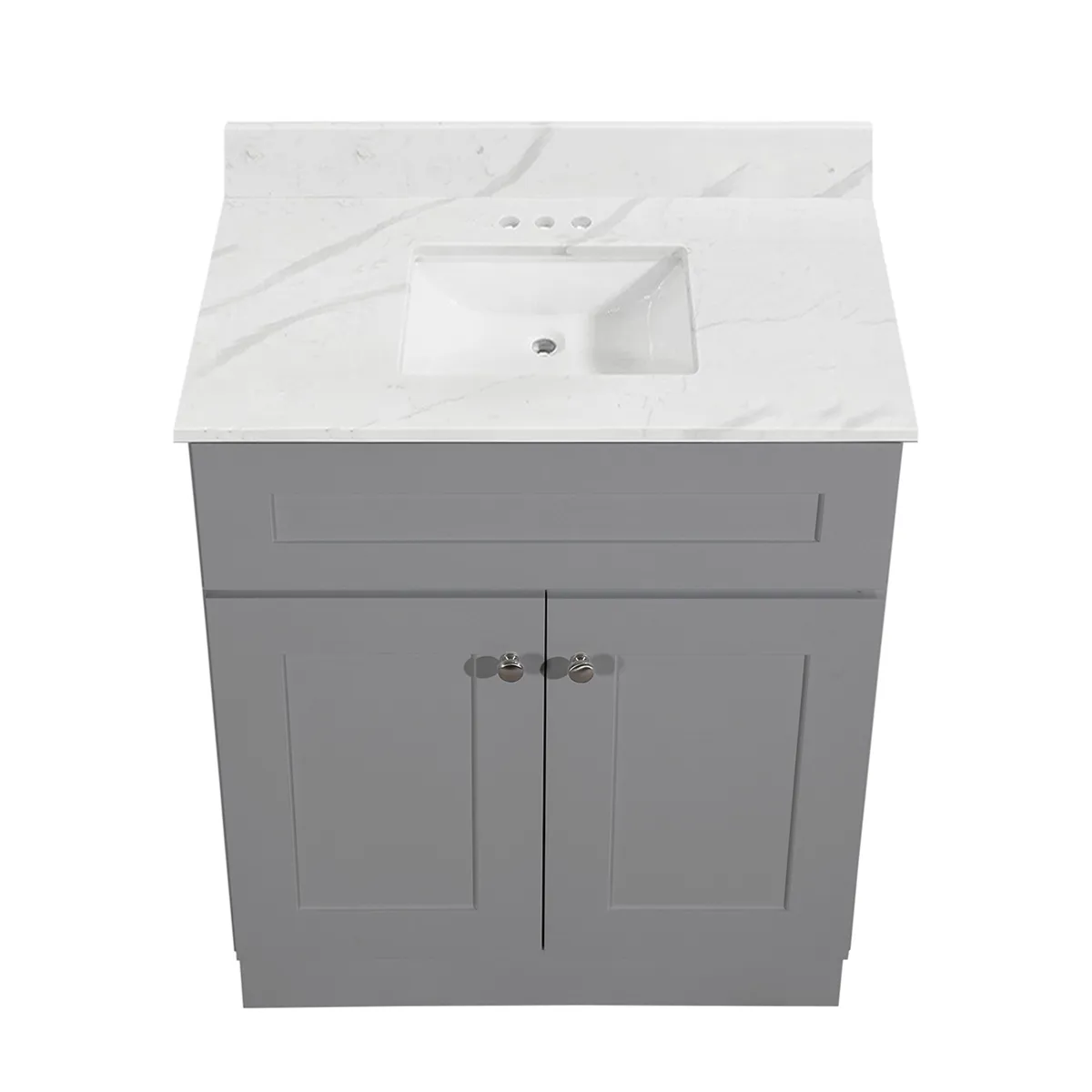 Newport Vanity Marble Top 2-Door 30in x 21in Light Grey