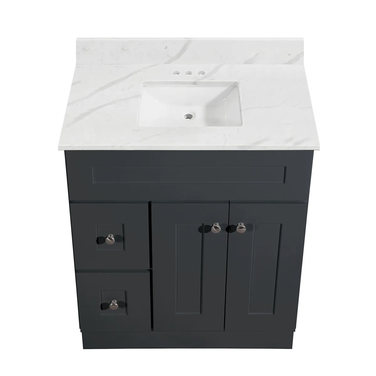 Newport Vanity Marble Top 2-Door/2-Drwr 30in x 21in Dk Gry