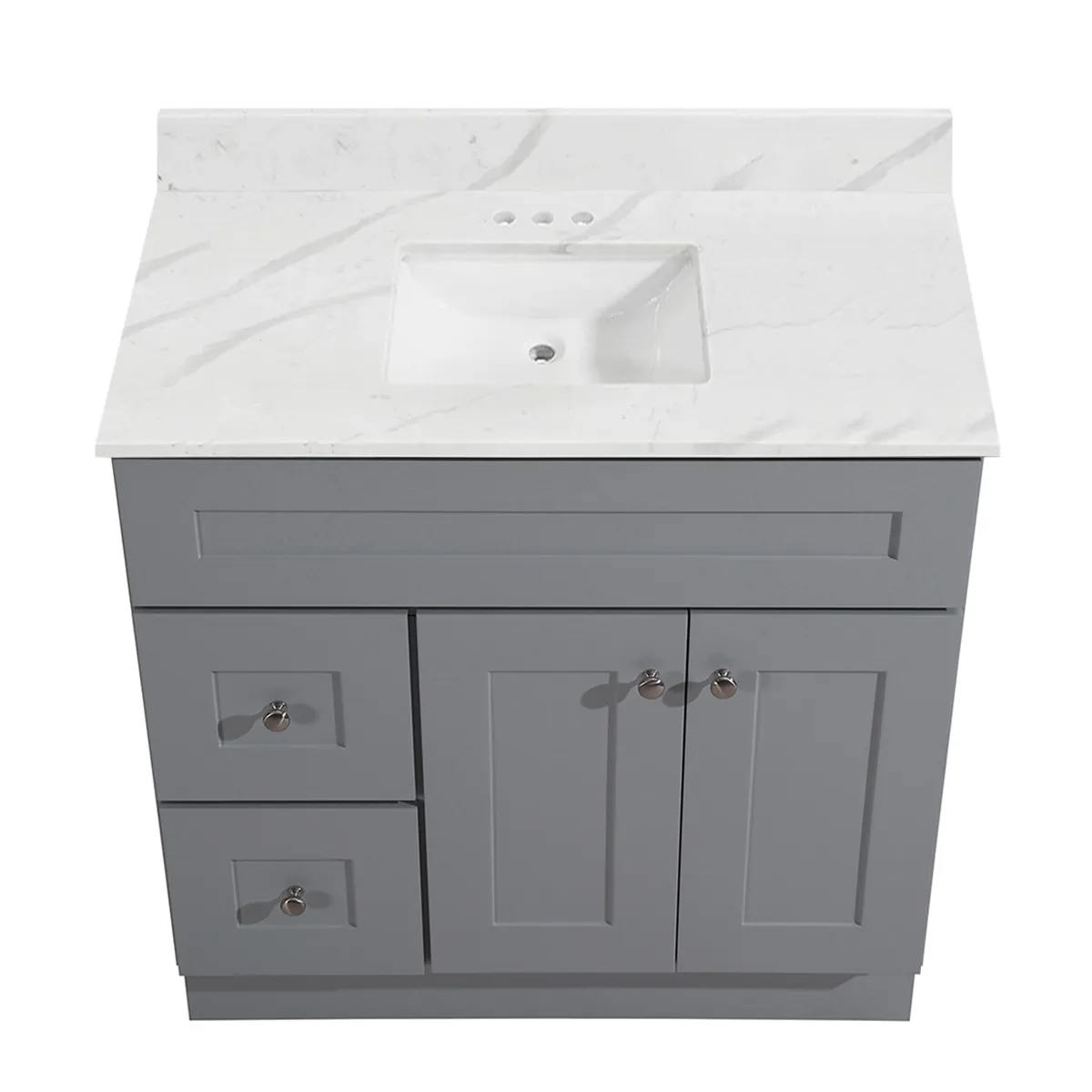 Newport Vanity Marble Top 2-Door/2-Drwr 36in x 21in Lt Gry
