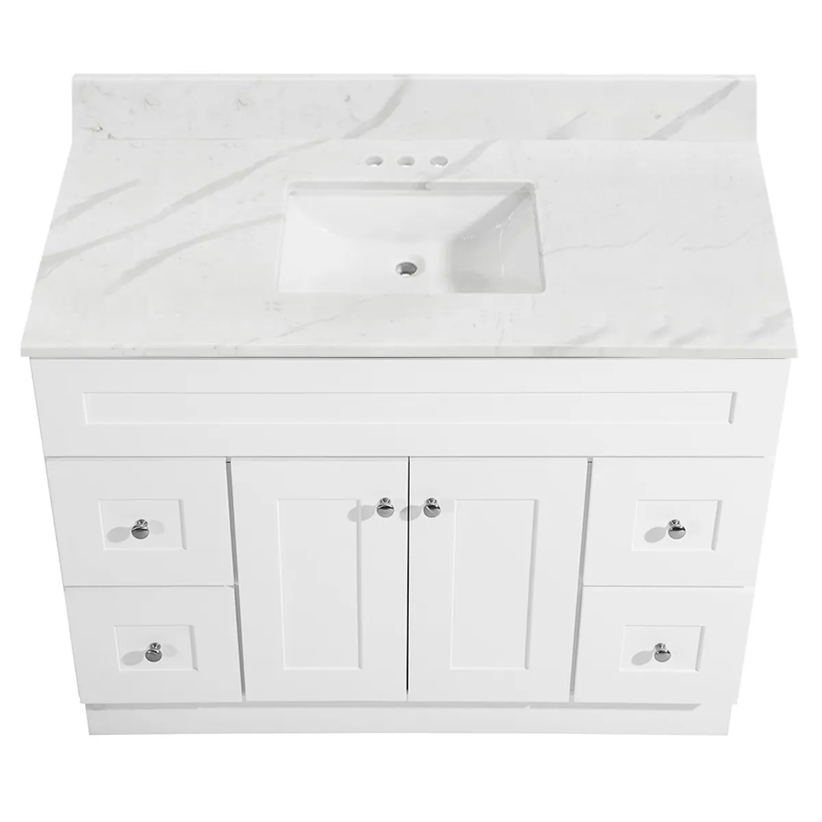 Newport Vanity Marble Top 2-Door/4-Drwr 48in x 21in White