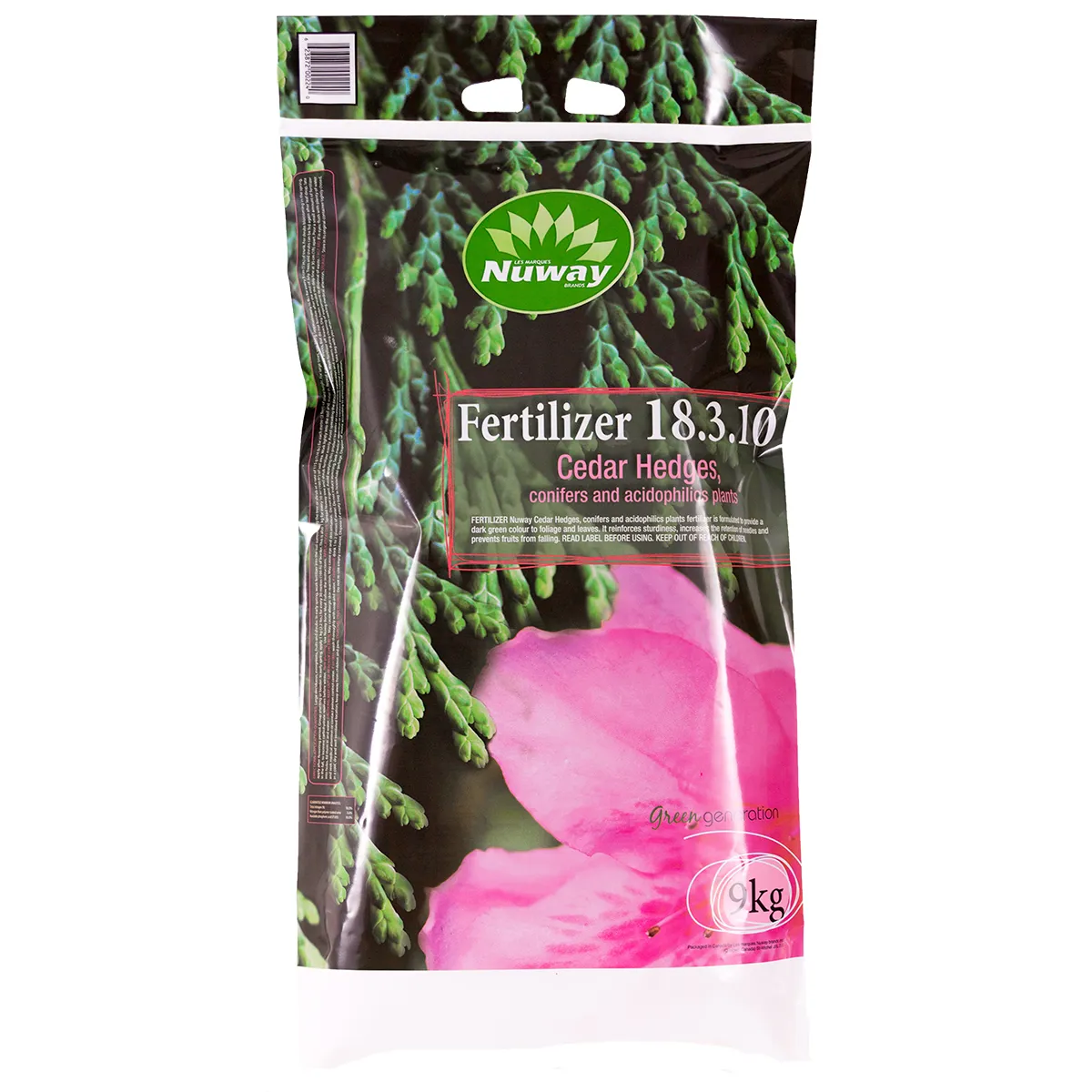 Nuway 18-3-10 fertilizer is formulated to increase fruit production and improve the quality of cedars; conifers and acidophilic plants.
