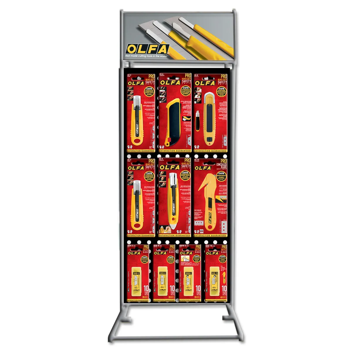 Convenient counter display for showcasing Olfa utility knives at the point of sale.