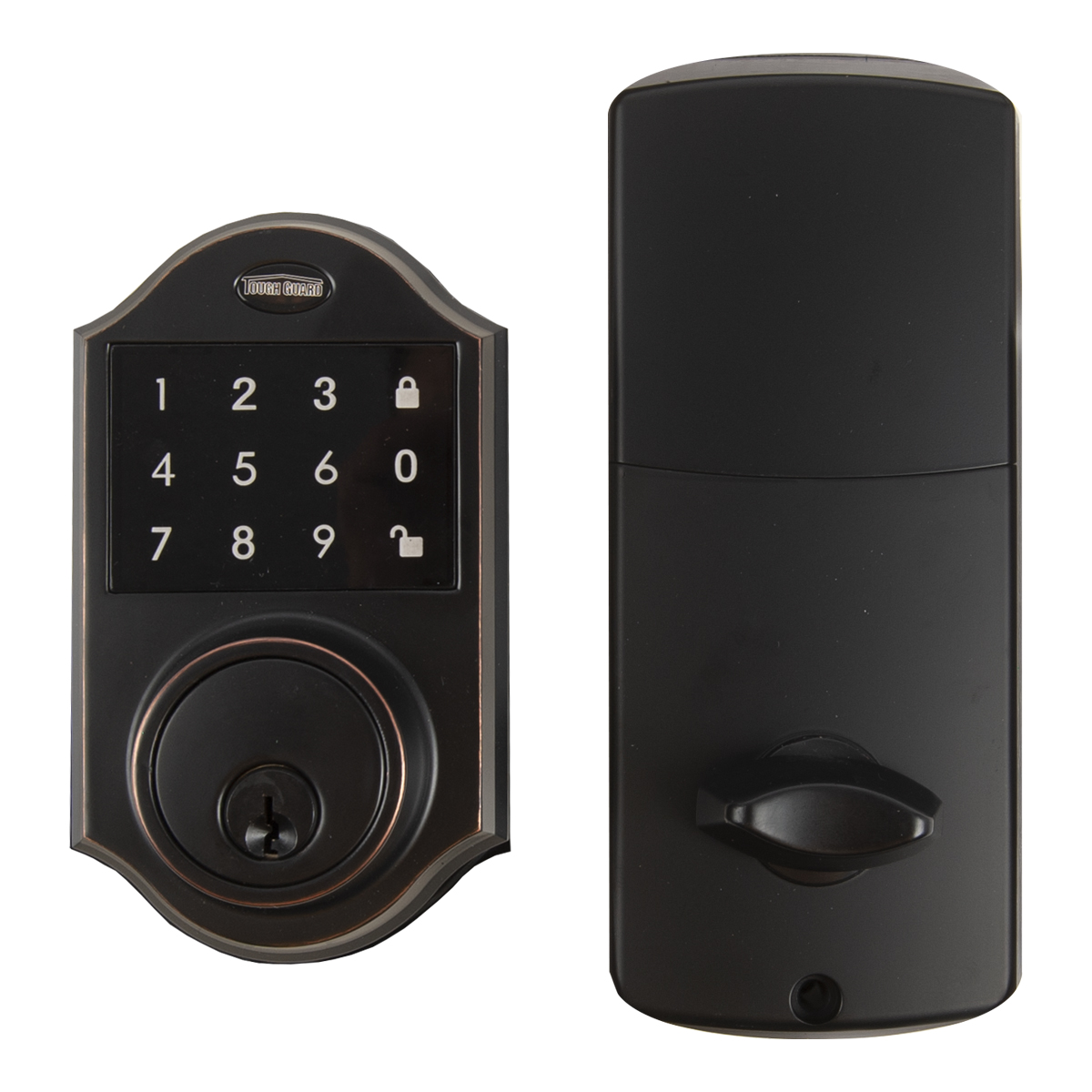 The electronic deadbolt from Tough Guard has been designed with maximum security in mind. Manufactured with the toughest materials for added strength, it is also equipped with "Bump" protection to prevent break-ins from lock bumping and features a failed attempts alarm to discourage tampering. This ornate looking lock with its LED backlit touch screen keypad will fit all standard door preparations, comes in three finishes and allows for multiple users with 50 programmable user codes. Requires installation and 4 AA Batteries, (not included). this lock can also be adjusted for right or left hand door applications and comes with 2 keys.