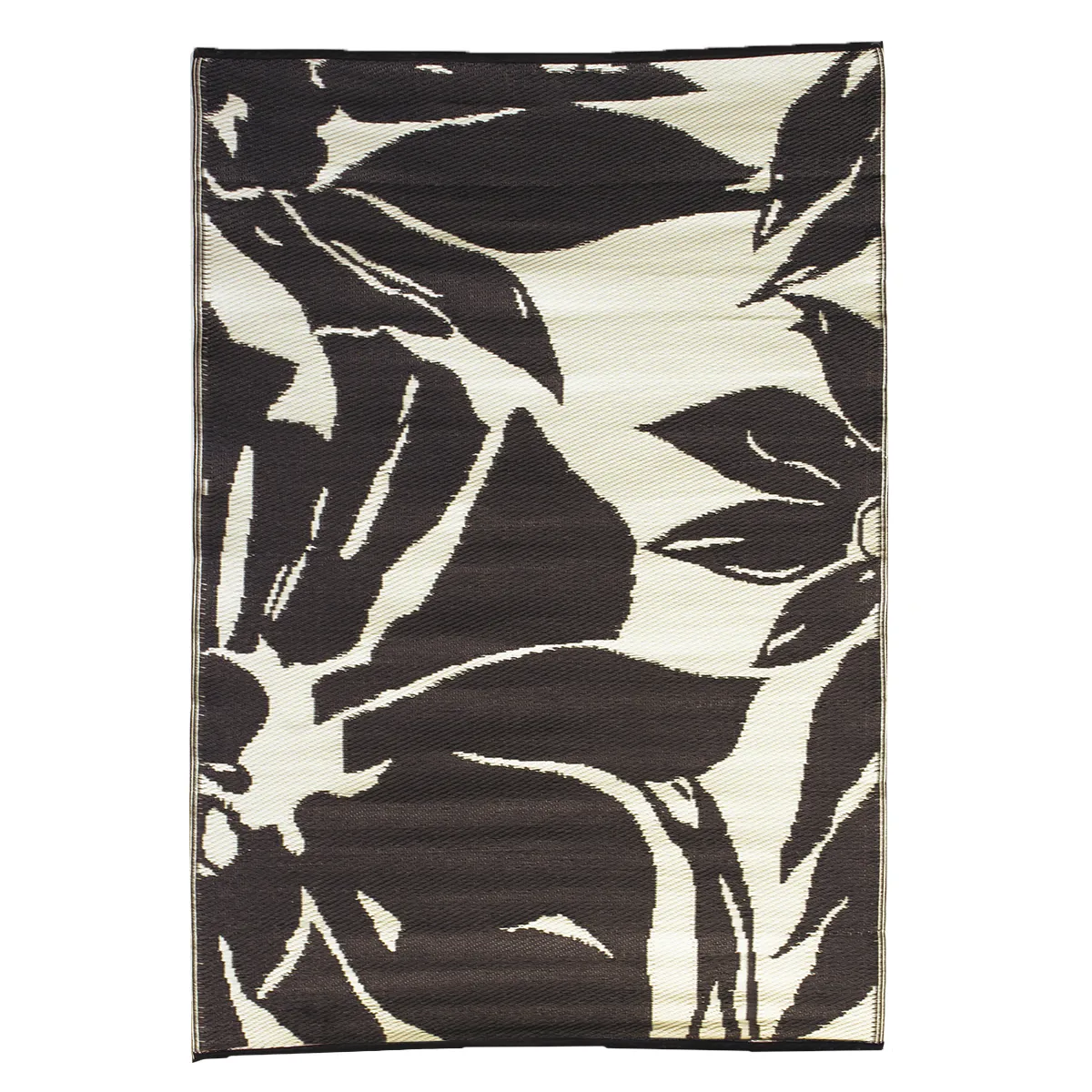 Outdoor Plastic Patio Rug Floral Abstract 8 x 10ft Black/Taupe