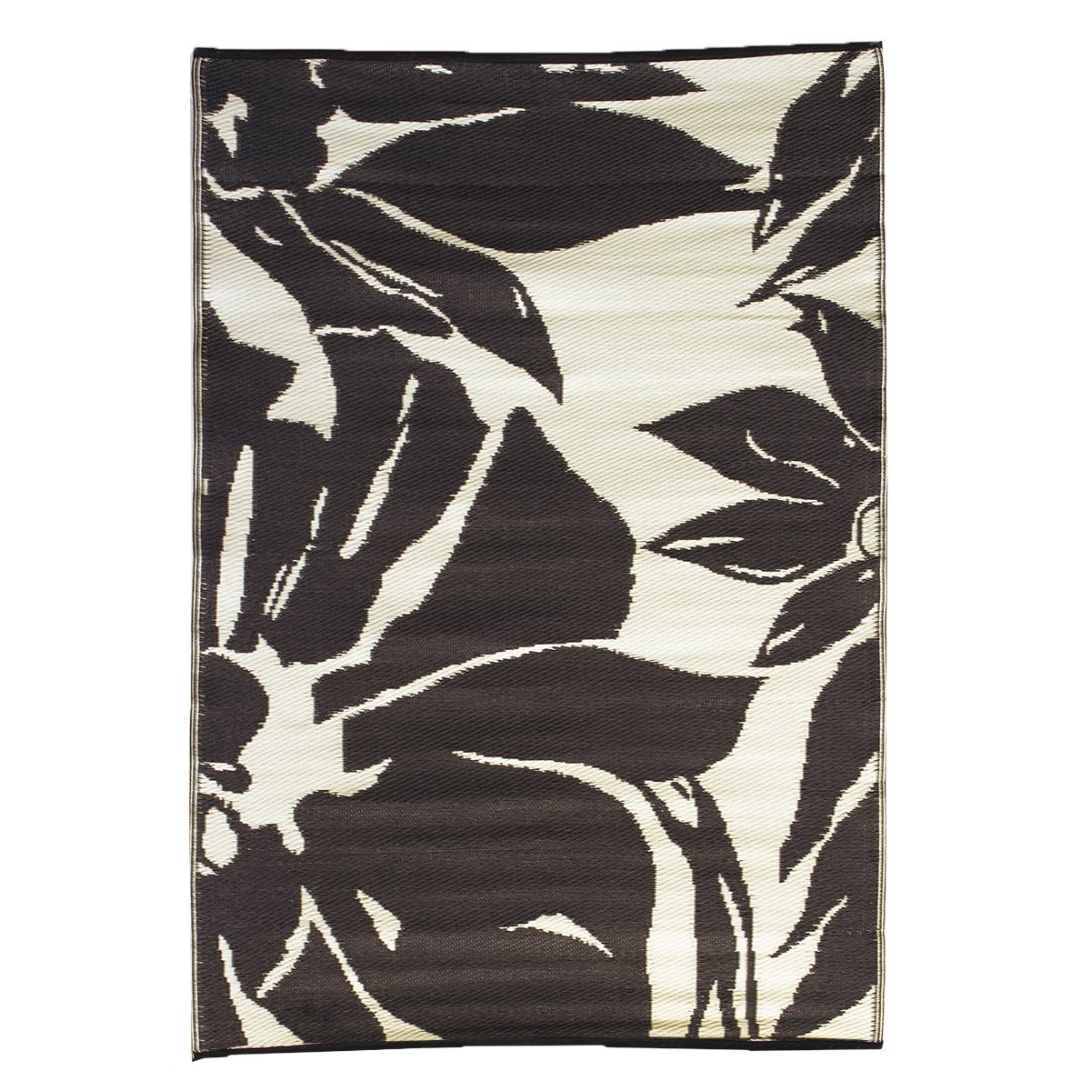 Outdoor Plastic Patio Rug Floral Abstract 9 x 12ft Black/Taupe