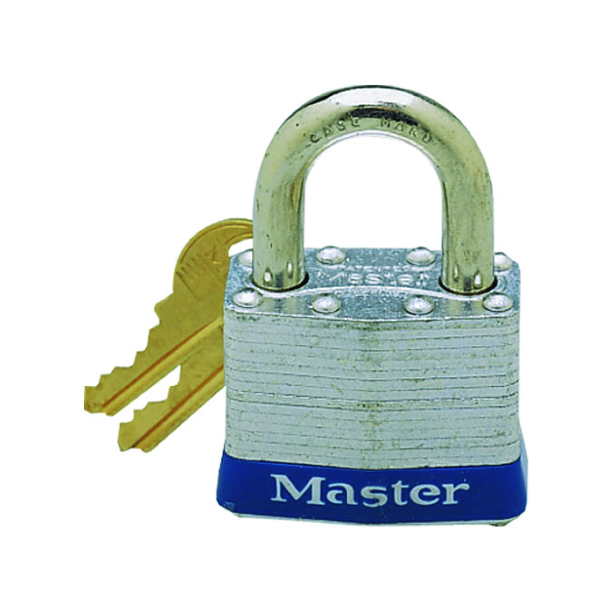 The Master Lock No. 5D Laminated Padlock features a 2 inch (51mm) wide laminated steel body for maximum strength and reliability. The 3/8 inch (10mm) diameter shackle is 1 inch (25mm) long and made of hardened boron alloy; offering maximum resistance to cutting and sawing. The 4-pin cylinder prevents picking and the dual locking ball bearings provide resistance against prying and hammering. The Limited Lifetime Warranty provides peace of mind from a brand you can trust.