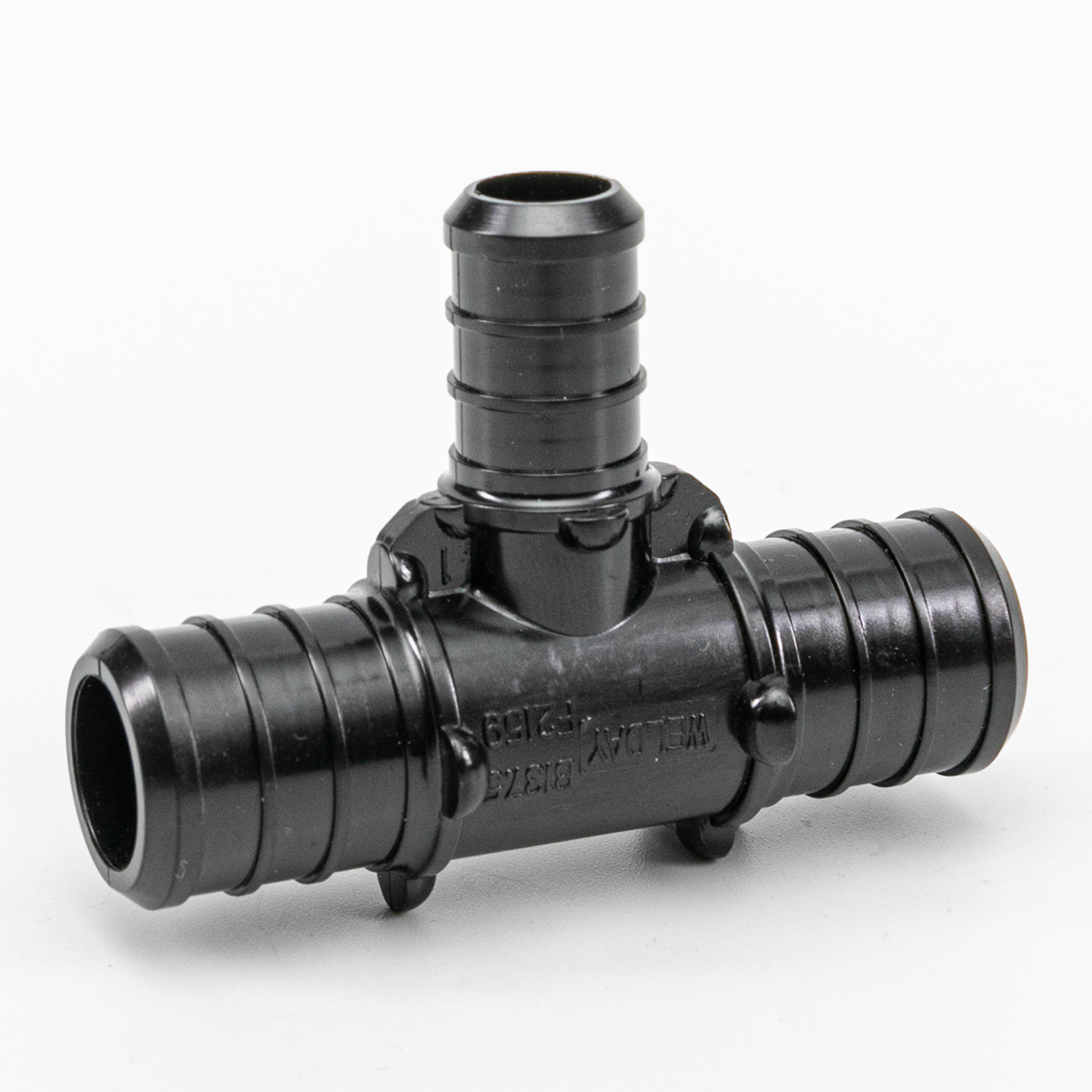 Pex Poly Tee Barb To Barb 3/4 x 1/2 x 1/2in Black