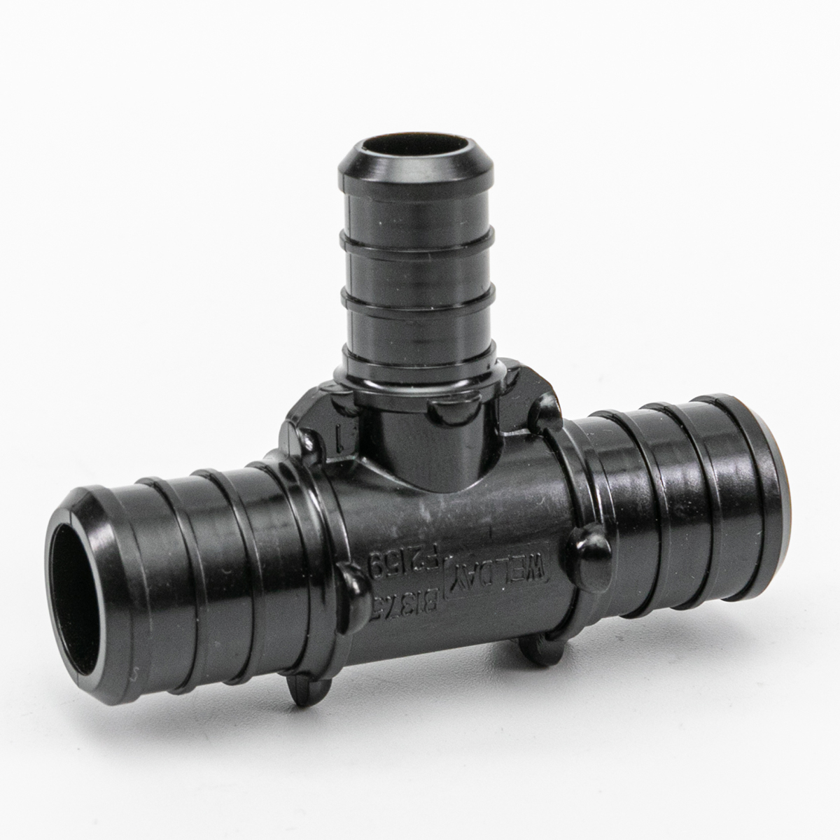 Pex Poly Tee Barb To Barb 3/4 x 1/2 x 3/4in Black