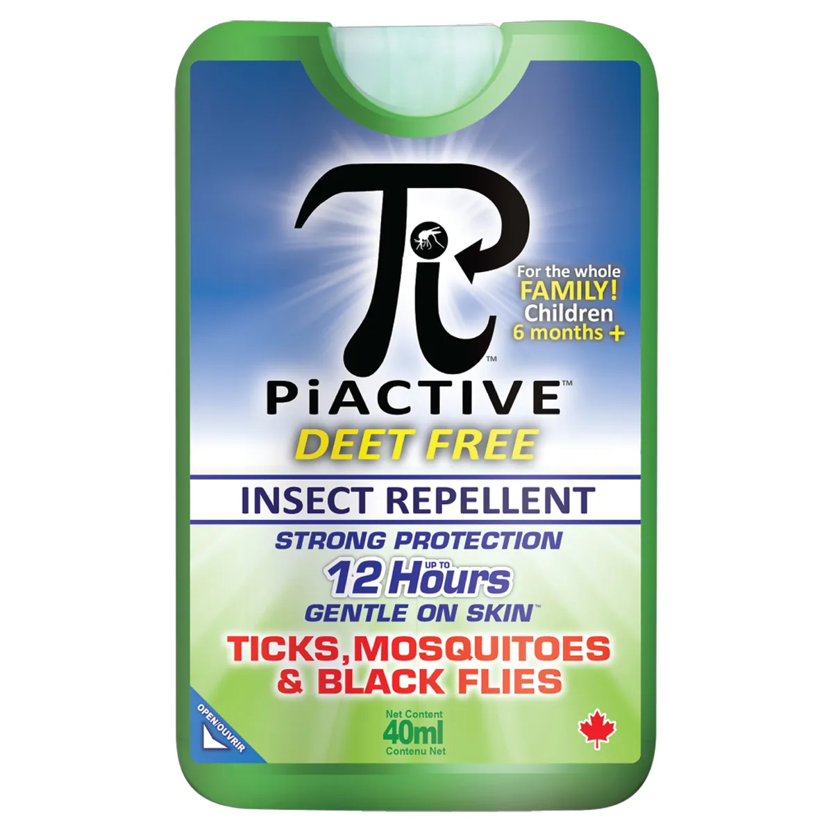 Unleash the power of piactive™ wallet size 12-hour deet-free insect repellent pump spray; formulated using the highest quality ingredients to provide superior protection against ticks; mosquitoes; black flies and more! Say goodbye to deet and hello to peace of mind! Get outdoors & have fun! Choose piactive™ and embrace insect-free freedom. Keep out of reach of children and pets. Read the entire label before use.