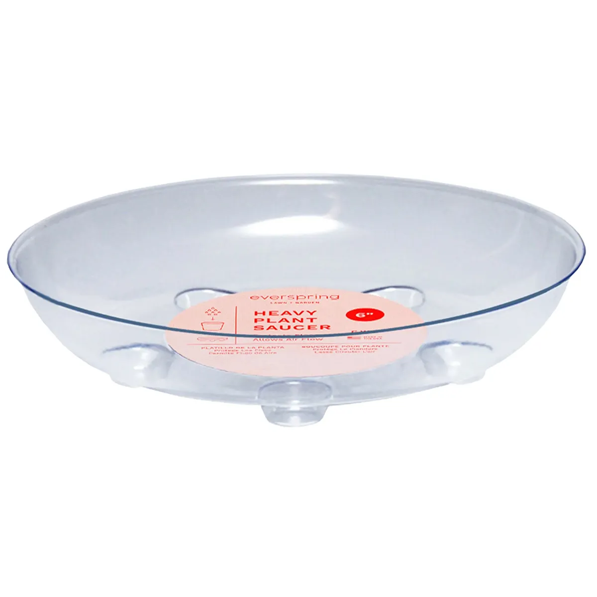 Our Clear Designer Series Heavy Plant Saucers protect surfaces via the footed-design; which allows airflow under the plant; guarding against moisture stains.