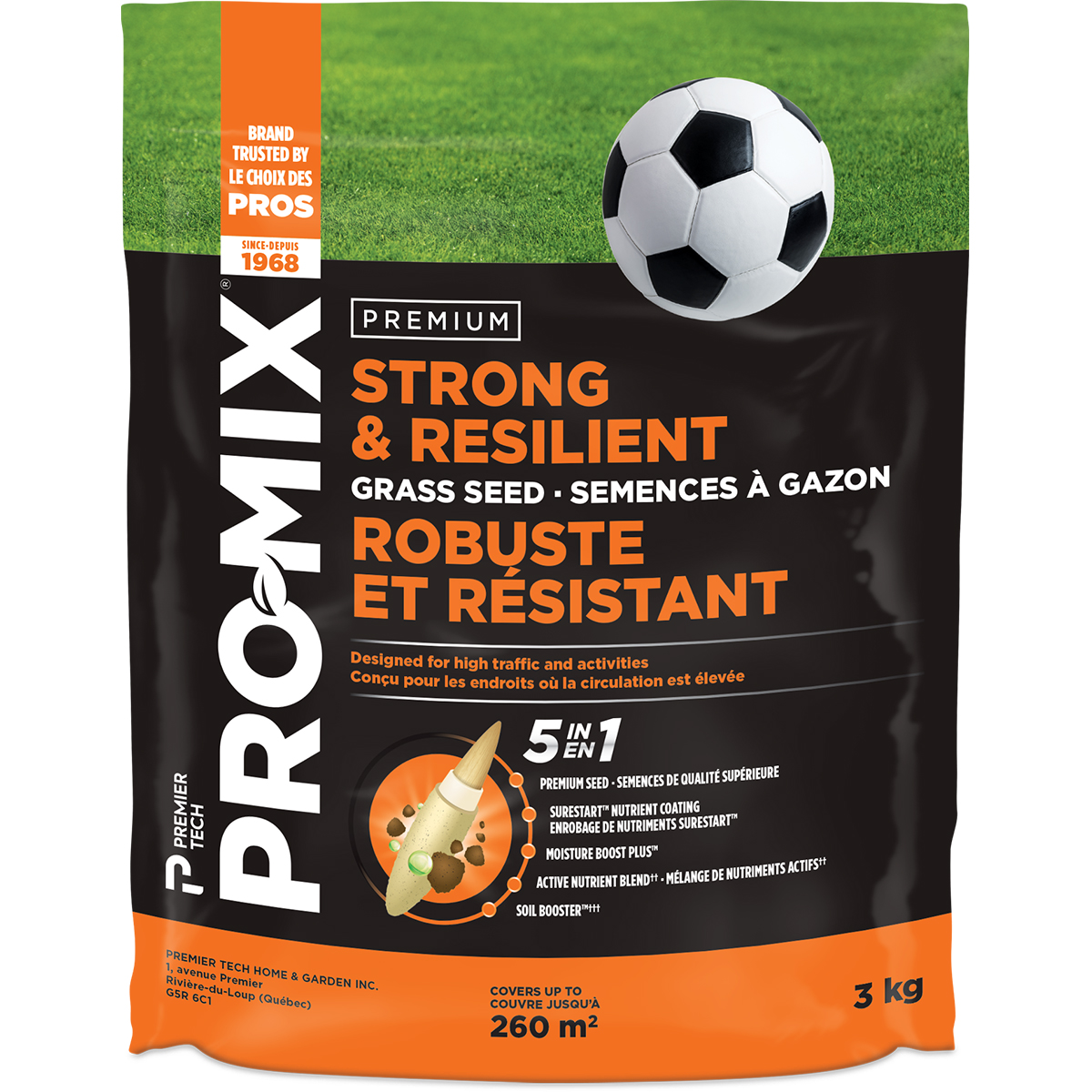 Grow the ultimate playground with pro-mix premium strong & resilient grass seed.