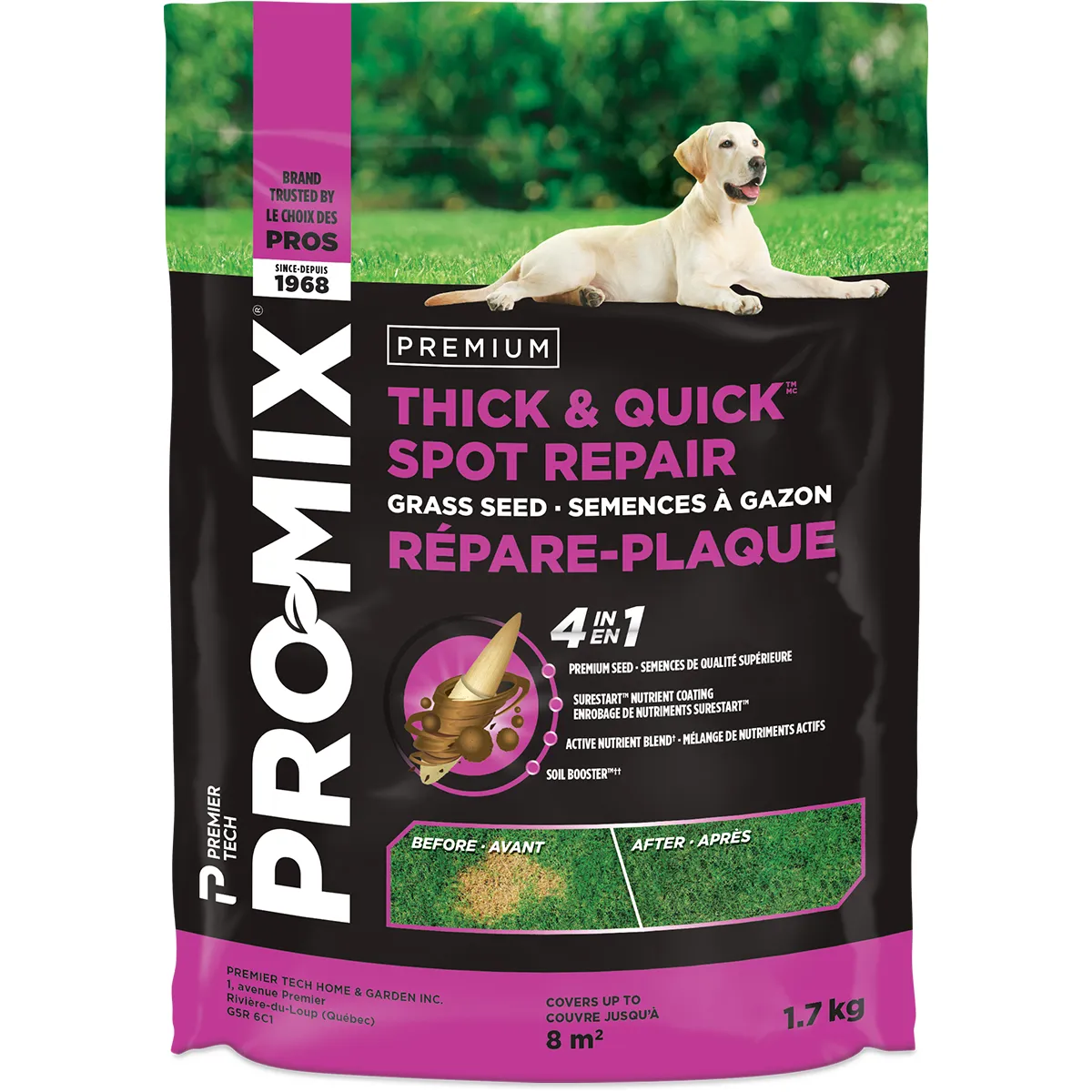 Pro-mix thick & quick spot repair is a 4 in 1 combination mix designed to fix bare spots and thin or damaged areas in your lawn; whether in the sun or shade.