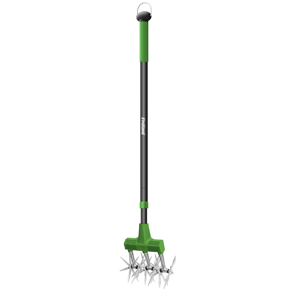 << Our rotary cultivator, with 3 aluminum wheel tines, a steel handle, and a soft TPR/PP grip offers several benefits for gardeners. These include efficient soil cultivation, reduced effort, comfortable handling, and durability. The rotating tines break up soil and weeds, the adjustable handle and cushioned grip enhance comfort, and the materials ensure long-lasting use.