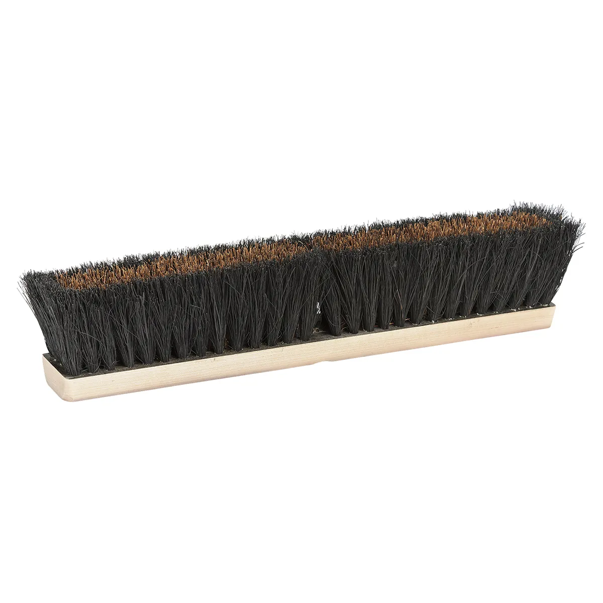 An all natural push broom head combining a stiff palmyra center core surrounded by an outer row of medium fibers.