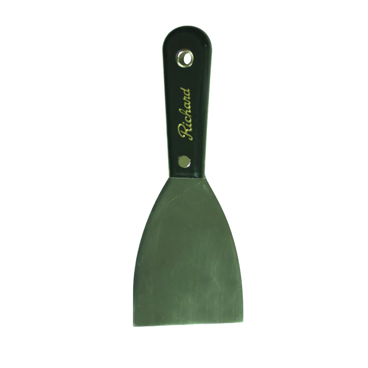 Putty Knife is Full tang blades; heat-treated; tempered; ground; mirror-polished and lacquer-sealed. Flexible taping knife blade is hollow ground on both sides. Handle made from polypropylene. Solvent-resistant handle. Scrapes and chips out old putty.