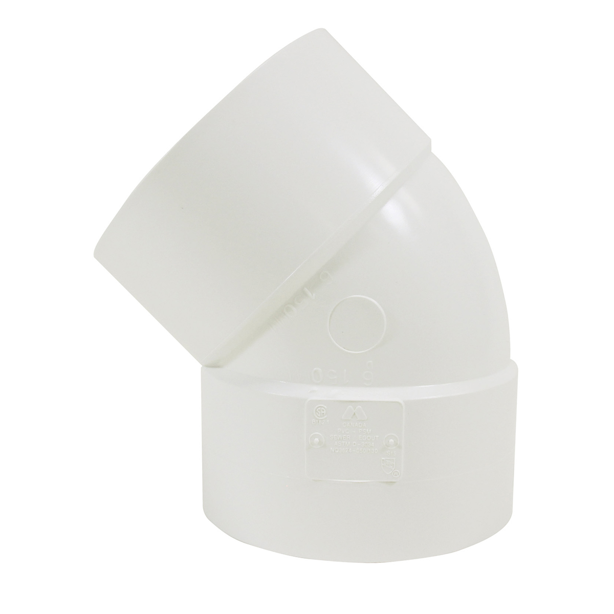 PVC Sewer Elbow 45° x 6in (HxH) White
