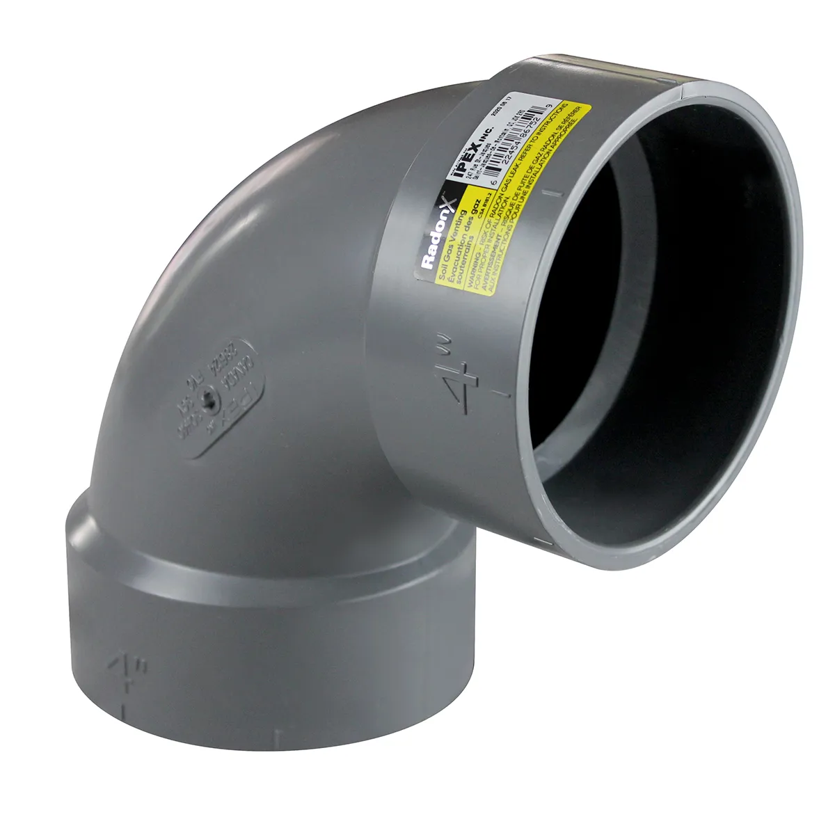 RadonX Fittings PVC-Soil Gas Vent 90D Elbow 4" H-RadonX