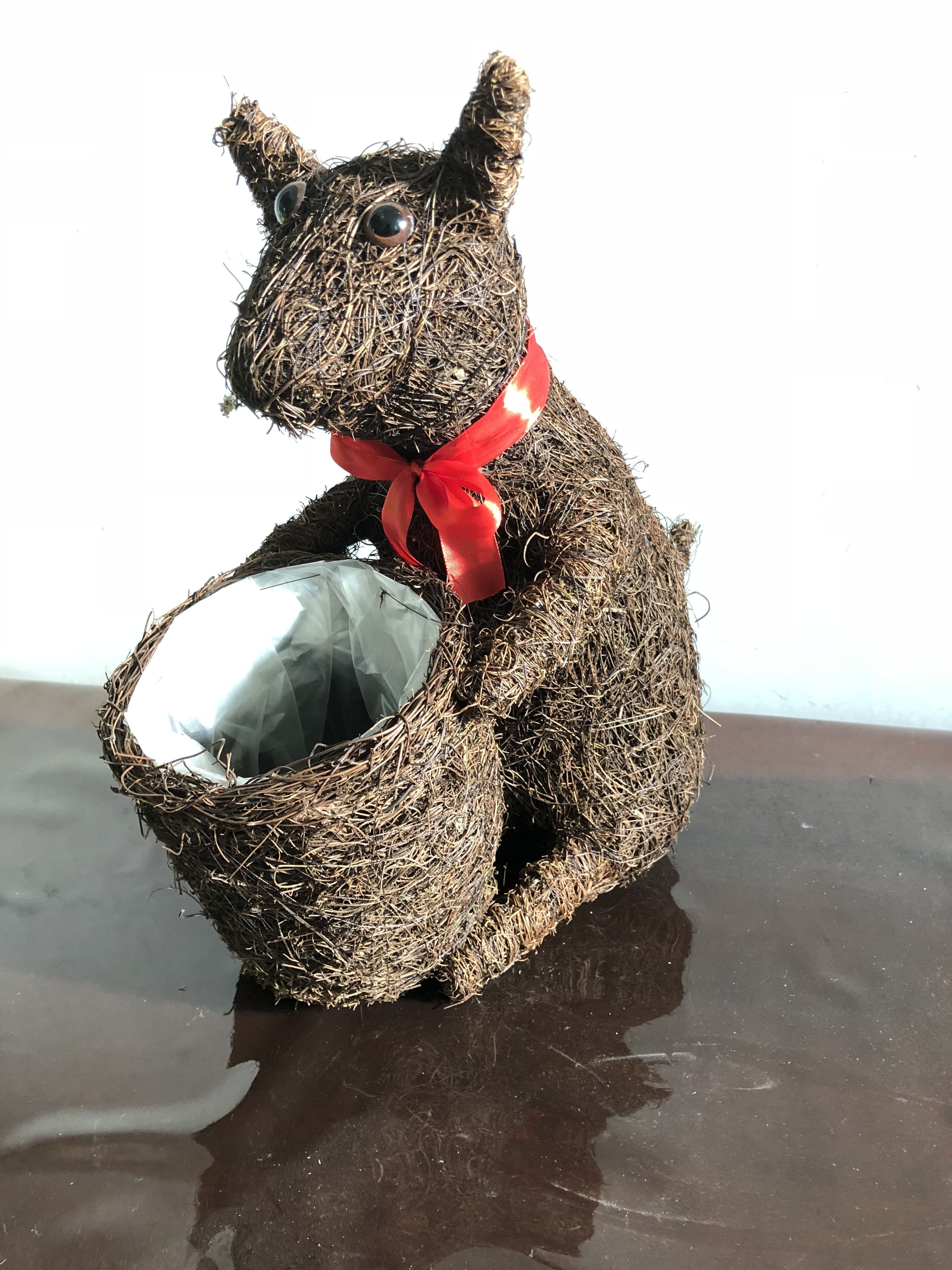 Rattan Cat Planter With Basket 11.8x6.3x16.1in - Basket Size 5.9x5.9x5.1in