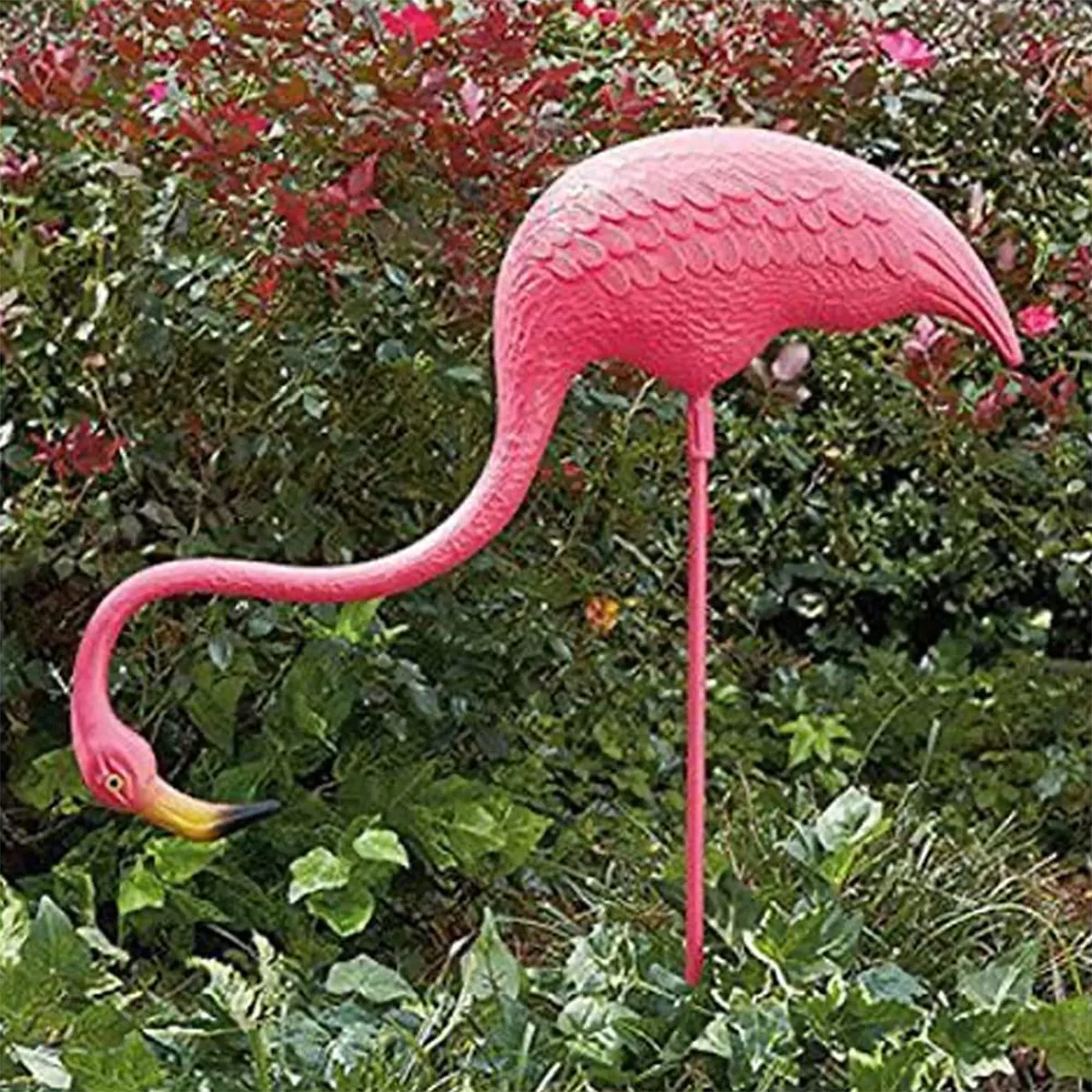 - Each life-sized flamingo includes metal rod legs, which measure 21 ½" long.