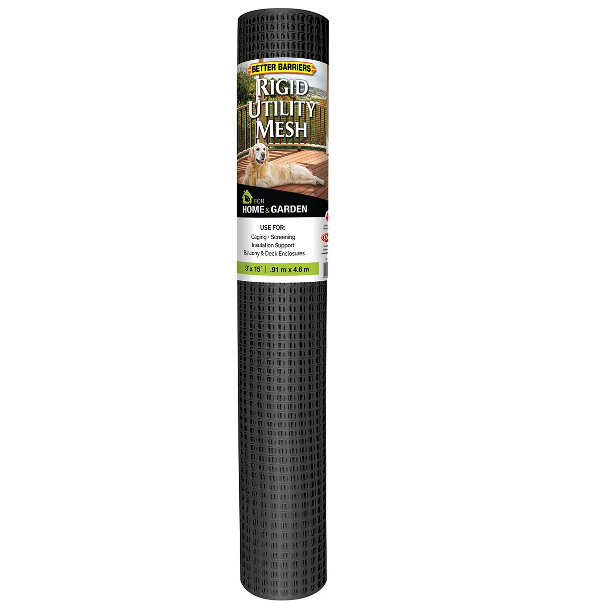 Rigid Utility Plastic Mesh 3ft x 15ft x 1/2in Black