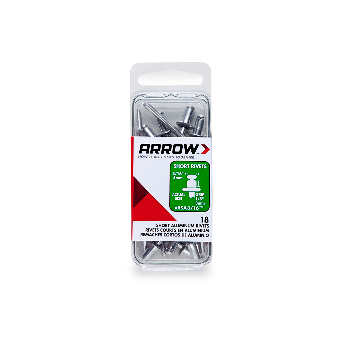 Rivets aluminum package 1/8 inch grip range; pack of 18 Use steel rivets for very heavy duty jobs and when riveting steel to steel. Use aluminum rivets for lighter weight jobs and materials such as aluminum; fabrics; plastics; leather; etc. Use washers when joining soft materials or when existing hole is oversize.