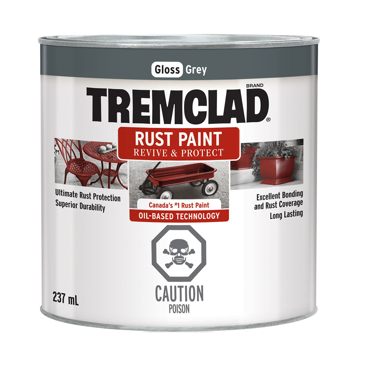 TREMCLAD Rust Paint provides superior rust inhibition; and is specially formulated to penetrate rust and bind to metal. Excellent rust coverage.