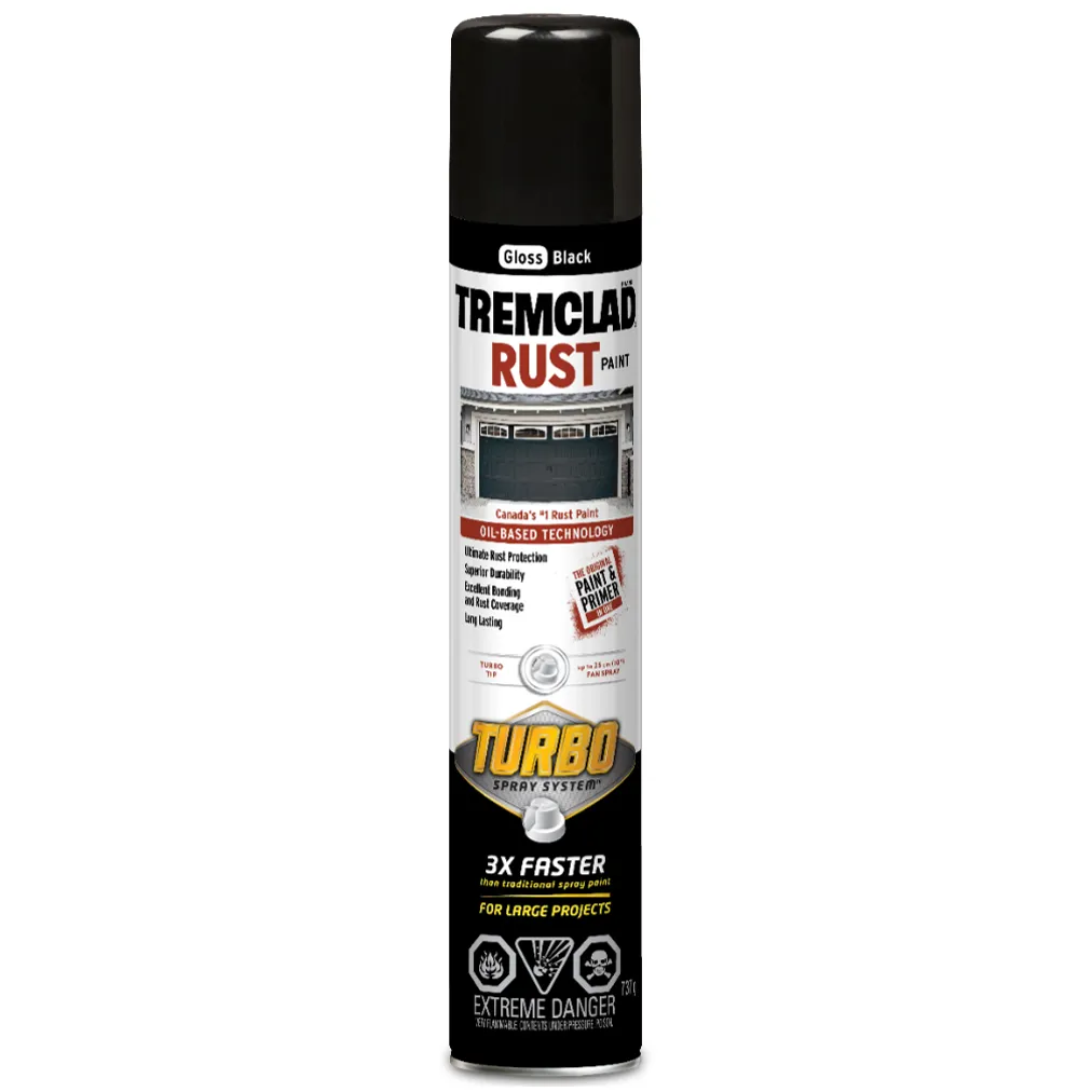 Rust-Oleum® pairs the trusted long-lasting durability of Tremclad Rust Paint with the Innovative Turbo Spray System™ to unleash 3X more paint per second. Now you can tackle your largest projects faster and easier than ever.