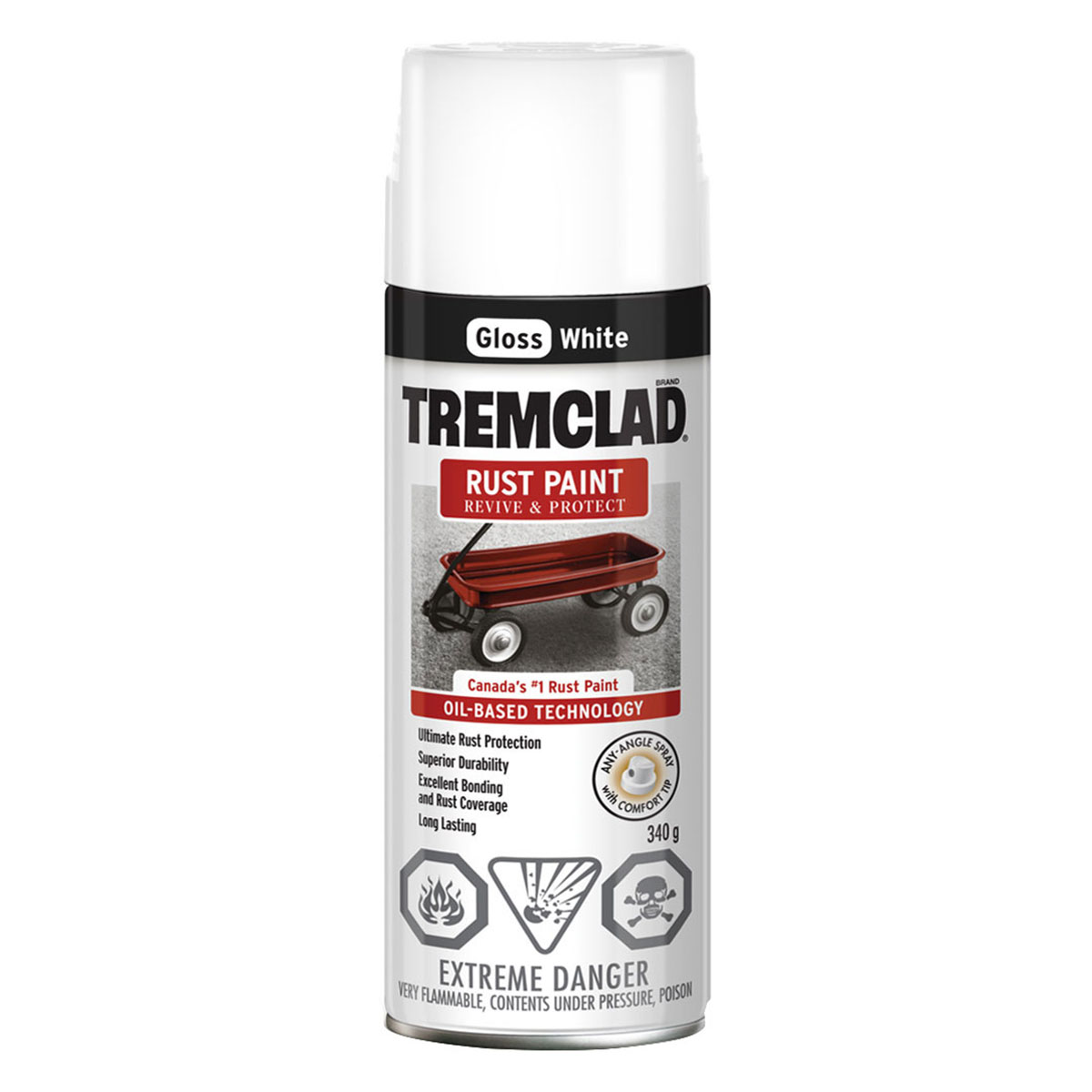 TREMCLAD® Oil-Based Rust Paint Spray offers superior rust inhibition and is specially formulated to penetrate rust and bind to metal. Comfort spray tip with a wide finger pad prevents finger fatigue while providing excellent spray control. Any-angle spray feature even sprays upside down for hard-to-reach areas.