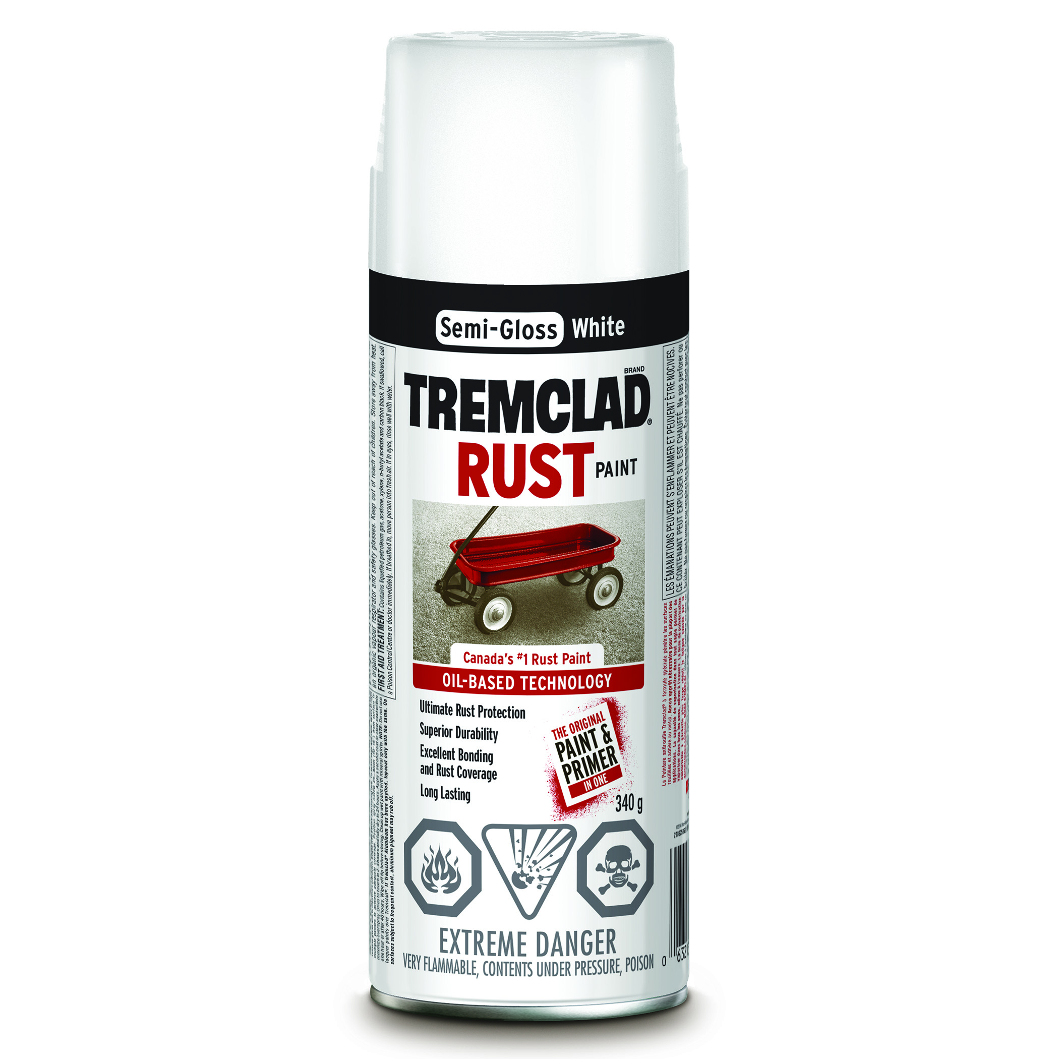 TREMCLAD® Oil-Based Rust Paint Spray offers superior rust inhibition and is specially formulated to penetrate rust and bind to metal. Comfort spray tip with a wide finger pad prevents finger fatigue while providing excellent spray control. Any-angle spray feature even sprays upside down for hard-to-reach areas.