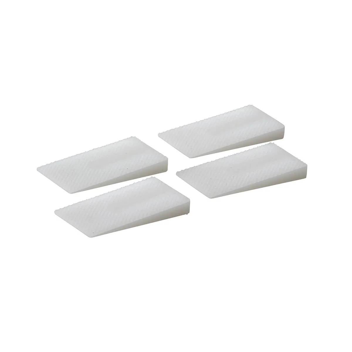 Toilet bowl shims. Helps stabilize wobbly toilets. Includes four plastic shims. Durable plastic construction.