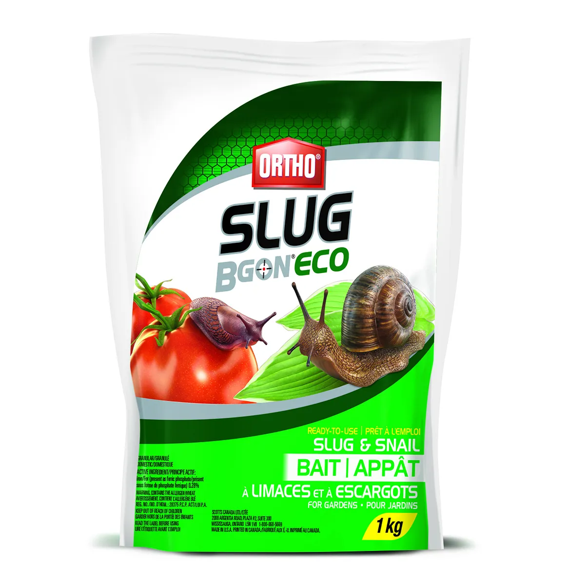 • Ortho® Bug B Gon® ECO Slug & Snail Bait protects flowers; shrubs; berries; fruit; and vegetable plants for up to 2 weeks.