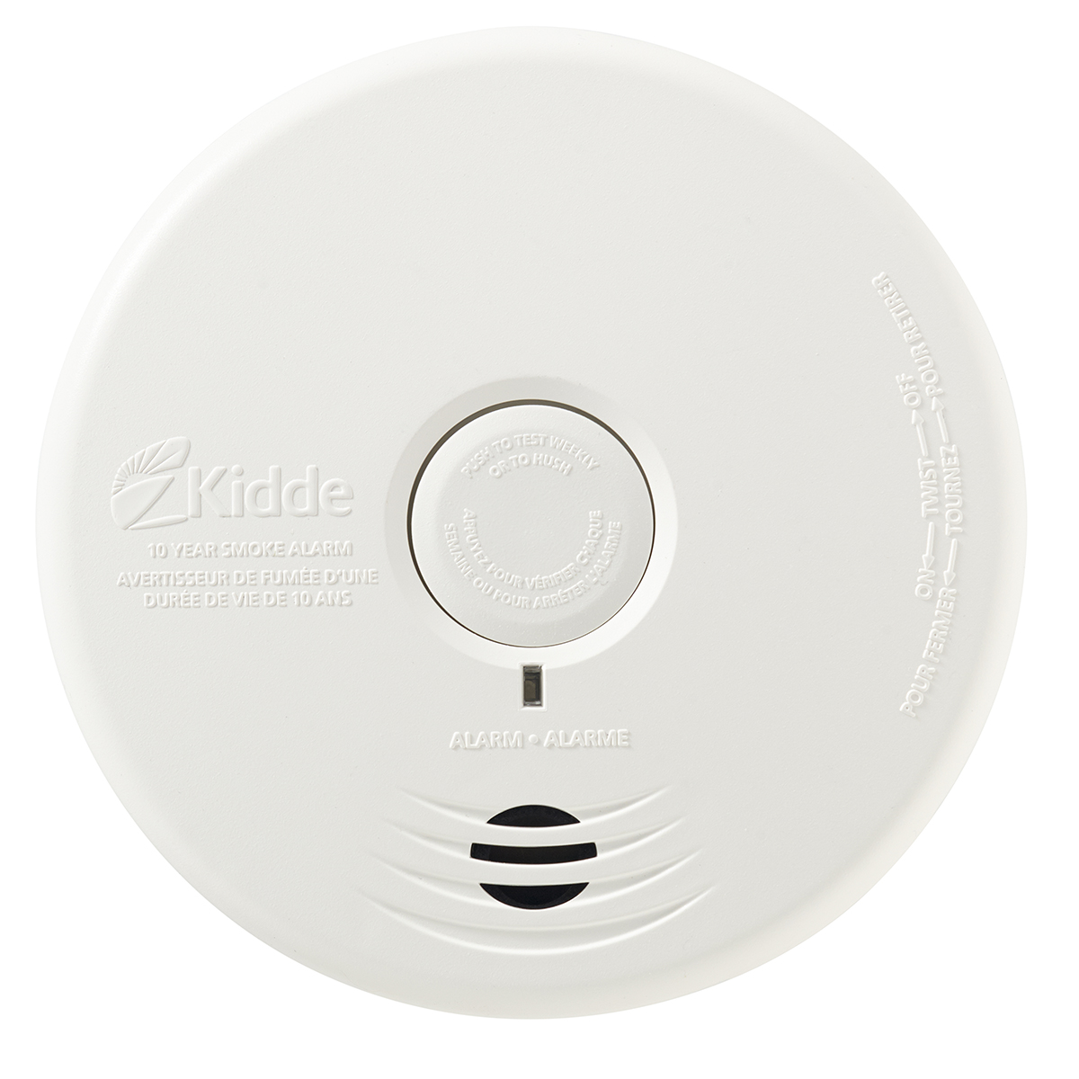 The Kidde 10-Year Battery Worry-Free Smoke Alarm is ideal near the kitchen with 10-year sealed lithium battery and Hush® to silence nuisance alarms. The innovative design allows for automatic activation once the unit is attached to the mounting bracket; there are no pull-tabs; no switches; everything is automatic. At the end of alarm life; the unit will chirp; indicating the alarm is in need of replacement. The customer can use a simple tool such as a screwdriver to deactivate the unit; stopping the chirp and making it safe for disposal. Contains a 10-year tamper proof battery that eliminates the need for battery replacement; and ends worry over unauthorized battery removal. The alarm provides continuous protection from smoke and fire; even during power outages. This smoke alarm uses photoelectric sensing technology. Photoelectric sensing alarms may detect visible fire particles (associated with slow smoldering fires) sooner than ionization alarms. Ionization sensing alarms may detect invisible fire particles (associated with fast flaming fires) sooner than photoelectric alarms. Leading authorities recommend that both ionization and photoelectric smoke alarms be installed to help ensure maximum detection of the various types of fires that can occur within the home.