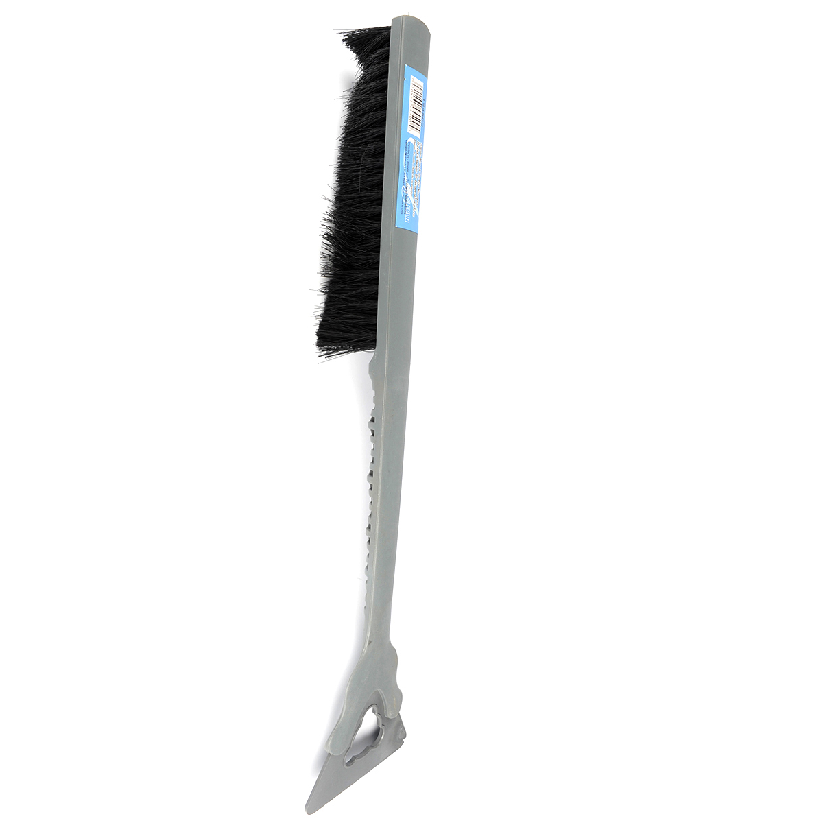 All-in-one snow brush with durable plastic handle and integrated ice scraper.