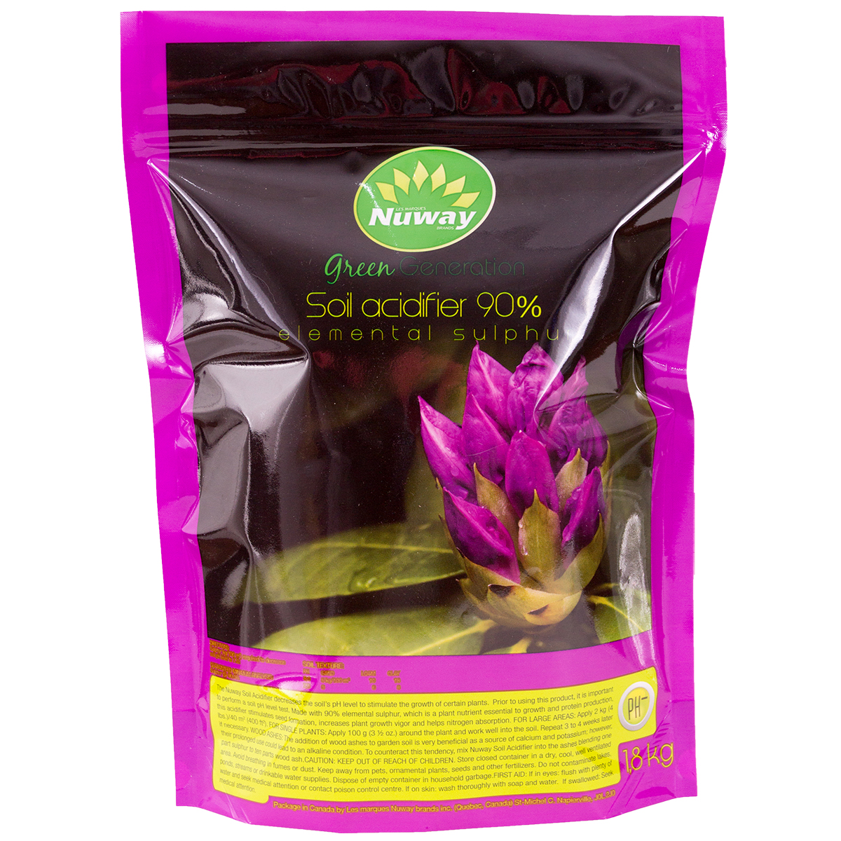 Nuway soil acidifier helps lower soil pH to promote the growth of certain plants. It is important to analyze the pH of the soil before using the product. Composed of 90% elemental sulfur; a nutrient essential for growth and protein formation; this acidifier helps seed formation; improves vigor and helps nitrogen uptake.