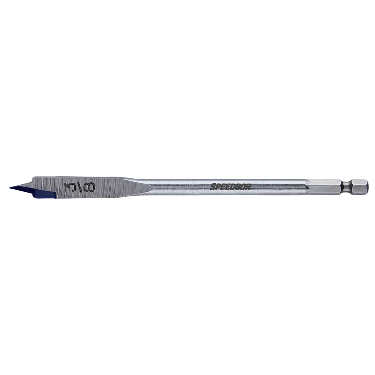 Blue-groove point and cutting edge for faster chip removal 4x faster than standard spade bits. double cutting spurs scribe the outside of the hole; reducing breakout. 10% Larger shank for added durability. Grooved hex shank prevents slipping in drill chuck or bit extension. Fits all standard quick change chucks.