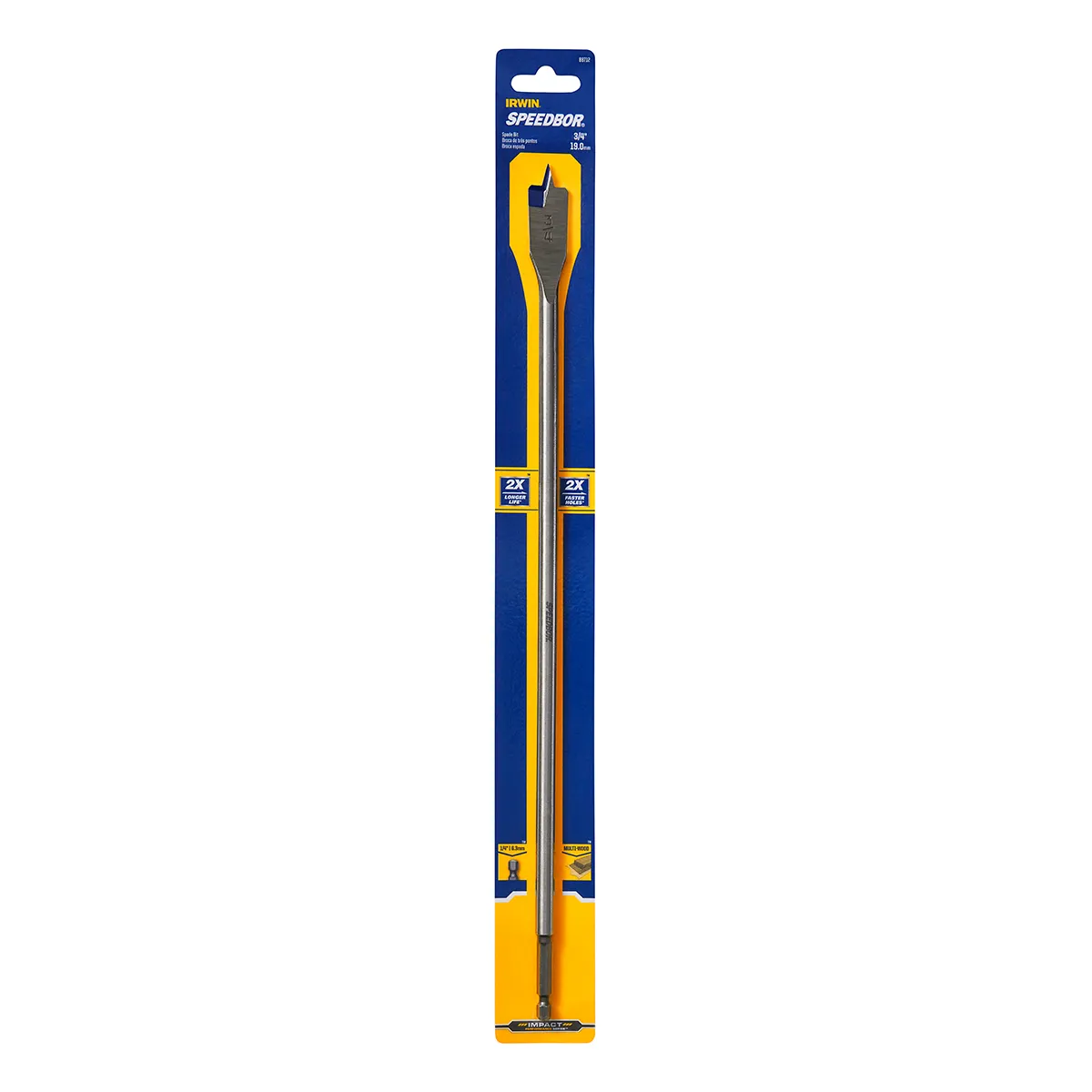 Extra-Long Spade Bits Feature Blue-Groove point and cutting edge for faster chip removal; 4x faster than standard spade bits. Double cutting spurs scribe the outside of the hole reducing breakout. 10% larger shank for added durability. 3-Flatted style shank. Not for use with bit extensions. Blue groove point and cutting edge for faster chip removal; double cutting spurs scribe the outside of the hole reducing breakout. Grooved hex shank prevents slipping in drill chuck or bit extension and fits all standard quick change chucks. Blue groove point and cutting edge for faster chip removal; double cutting spurs scribe the outside of the hole reducing breakout. Grooved hex shank prevents slipping in drill chuck or bit extension and fits all standard quick change chucks.