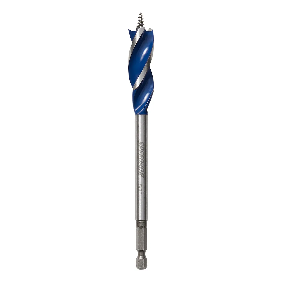 5/8in by 6in tri-flute 1/4in drive speed bit is a wood boring bit with three cutting spurs for faster; cleaner holes; less breakout; and extended drilling life. Full screw-point tip allows bit to self-feed for ease of drilling. Tapered tri-flute design for faster chip ejection and less binding. 1/4in quick-change reduces slipping in standard chucks and is compatible with all 1/4in quick-change chucks; including impact drills.