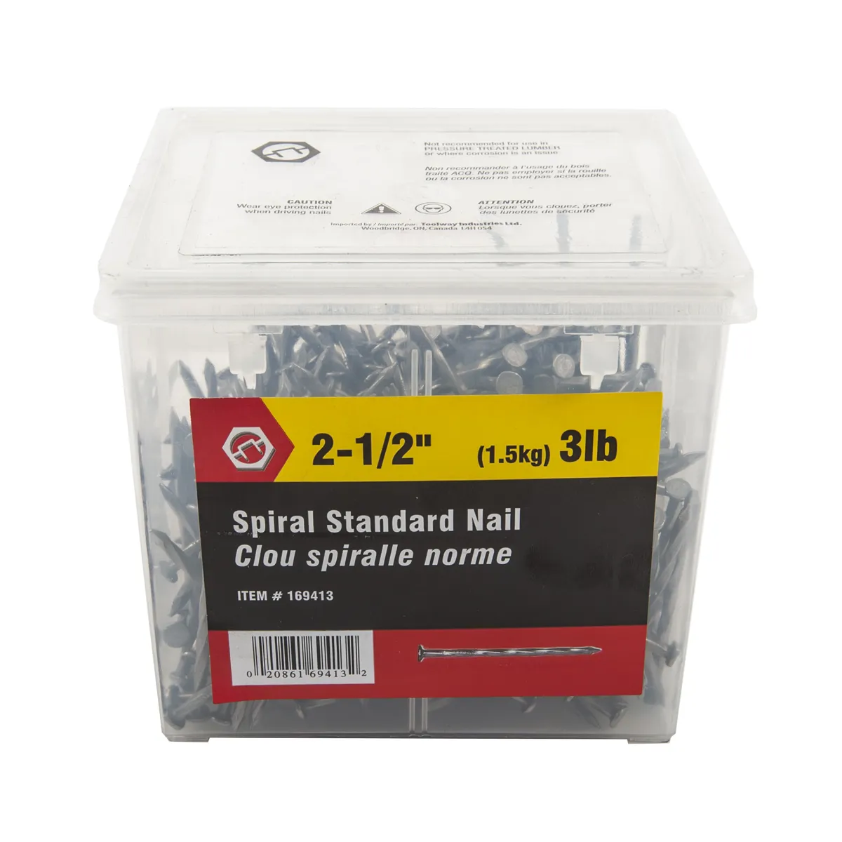 3lb (1.5kg) Spiral Standard Nails Bright 2-1/2in