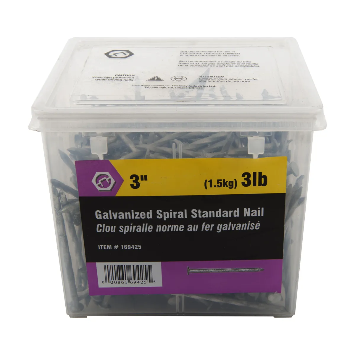 3lb (1.5kg) Spiral Standard Nails HDG 3in