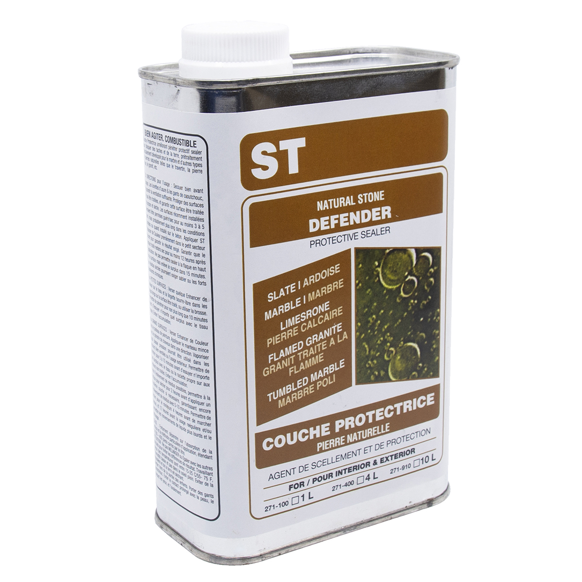 ST Defender Natural Look Sealer is a specially developed pre-treatment product for marble and other types of natural stone such as travertine; bluestone; granite; etc. This impregnating protector is also suitable for cement tiles and plastic tiles that contain bits of natural stone such as granite and marble composites. Cover age depends upon the absorption of the particular surface and method of application. Coverage ranges from 200 – 400 sqft/litre.