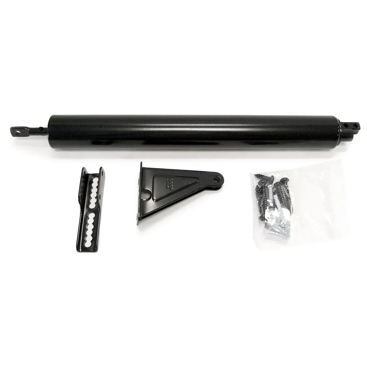 This standard-duty pneumatic door closer uses air pressure to provide sure; silent closing. The door closing speed is adjustable; ensuring that doors shut securely every time. The seasonal adjustment options allow you to swap between window and screen on your door. Ideal for doors up to 1-1/4in thick; 30 to 50 lbs. The door closer measures 1. 25 inches in diameter by 10. 5 inches long.